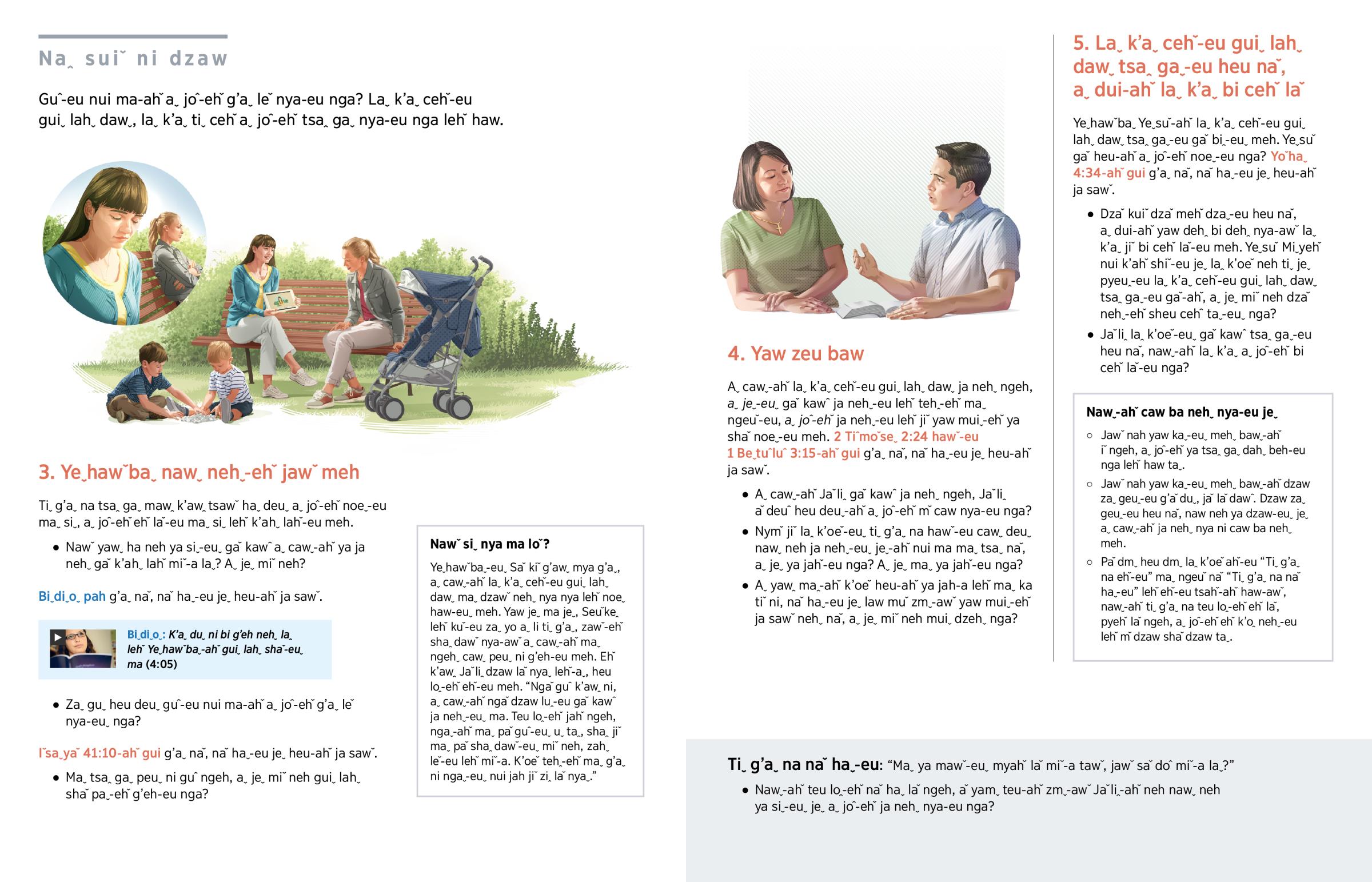 Yeˬsuˇ˗euˬ zaˬ lahˇ deuˬ ‘Nga maꞈ neh kʼaˇ ya gaˬ kʼaˇ ya mawˇ˗euˬ gaˇ kawˆ heu maˬ ja˗ehˇ maˬ jawˇ coeˇ nya’ lehˇ ehˇ˗eu meh (Gʼaˬkʼehˇ 4:20) Aˬ yawꞈ maꞈ yaw tsaˬ yaw dawˇ jeˬ˗ahˇ aˇ poeˬ taˬ baw dui dui˗eu miˇ neh, tsawˇ haˬ deuˬ˗ahˇ kʼaˇ gʼeh nya gaˇ neh ja nehˬ mawꞈ˗eu meh. Nawˬ˗ahˇ jiˇ teu loꞈ˗ehˇ gʼeh miˇ˗a laˬ? Toˆ˗ehˇ naˇ aˬ geu ngeh yehꞈ laˇ nga lehˇ haw˗awˇ, nawˬ neh ya dzaw˗euˬ jeˬ nymˇ jiˇ laꞈ kʼoeˇ˗euˬ deuˬ hawˇ˗eu cawˬ deuˬ˗ahˇ yaw zeu baw˗eu laꞈ kʼoeˇ ja nehˬ nya meh.—Gawˇlawˇsehˇ 4:6-ahˇ gui.