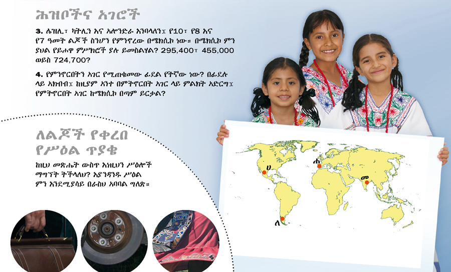 የምንኖርበትን አገር የሚጠቁመው ፊደል የትኛው ነው? በፊደሉ ላይ አክብብ፤ ከዚያም አንተ በምትኖርበት አገር ላይ ምልክት አድርግ፤ የምትኖርበት አገር ከሜክሲኮ በጣም ይርቃል?