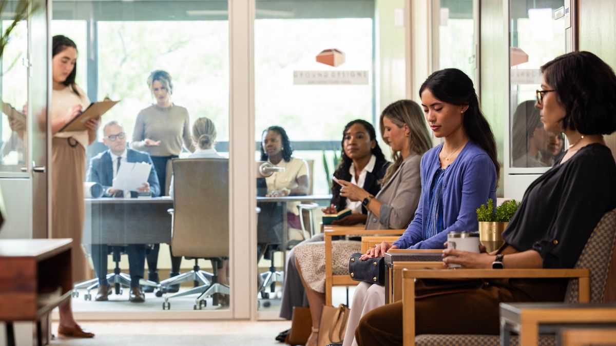 b DESCRIPCIÓN DE LA IMAGEN: Una hermana le ora a Jehová mientras espera antes de una entrevista de trabajo.