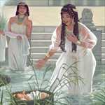 وَفِي هٰذَا ٱلْوَقْتِ، جَاءَتِ ٱبْنَةُ فِرْعَوْن لِتَسْتَحِمَّ فِي ٱلنَّهْرِ. فَرَأَتِ ٱلسَّلَّةَ. وَوَجَدَتْ فِيهَا طِفْلًا صَغِيرًا يَبْكِي، فَحَنَّتْ عَلَيْهِ. ثُمَّ ٱقْتَرَبَتْ مَرْيَم وَسَأَلَتْهَا: ‹هَلْ أَذْهَبُ وَأُفَتِّشُ لَكِ عَنِ ٱمْرَأَةٍ تُرْضِعُ ٱلْوَلَدَ؟›. جَاوَبَتْهَا: ‹نَعَمْ. اِذْهَبِي›. فَذَهَبَتْ مَرْيَم وَجَلَبَتْ أُمَّهَا يُوكَابِد. فَقَالَتِ ٱبْنَةُ فِرْعَوْن لِيُوكَابِد: ‹خُذِي هٰذَا ٱلطِّفْلَ وَأَرْضِعِيهِ لِي. وَأَنَا أَدْفَعُ لَكِ أُجْرَتَكِ›.