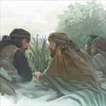 وَبَعْدَ ٤٠ يَوْمًا، رَجَعَ ٱلْجَوَاسِيسُ وَمَعَهُمْ تِينٌ وَرُمَّانٌ وَعِنَبٌ. وَقَالُوا لِلشَّعْبِ: ‹اَلْأَرْضُ جَيِّدَةٌ، لٰكِنَّ ٱلنَّاسَ أَقْوِيَاءُ. وَهُنَاكَ أَسْوَارٌ عَالِيَةٌ حَوْلَ مُدُنِهِمْ›. فَقَالَ كَالِب: ‹لٰكِنَّنَا نَقْدِرُ عَلَيْهِمْ. هَيَّا نَذْهَبُ وَنَغْلِبُهُمْ!›. هَلْ تَعْرِفُ لِمَاذَا قَالَ ذٰلِكَ؟ لِأَنَّهُ كَانَ يَثِقُ بِيَهْوَه. وَيَشُوع أَيْضًا وَثِقَ بِيَهْوَه. لٰكِنَّ ٱلْجَوَاسِيسَ ٱلْـ ١٠ ٱلْبَاقِينَ قَالُوا: ‹لَا! اَلنَّاسُ هُنَاكَ أَطْوَلُ مِنَّا بِكَثِيرٍ. أَجْسَامُهُمْ ضَخْمَةٌ جِدًّا! شَعَرْنَا أَنَّنَا مِثْلُ ٱلْجَنَادِبِ فِي نَظَرِهِمْ، مِثْلُ حَشَرَاتٍ صَغِيرَةٍ أَمَامَهُمْ›.