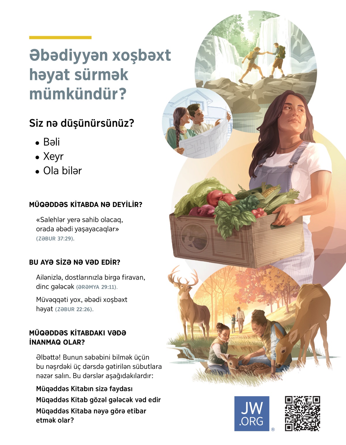 «Salehlər yerə sahib olacaq, orada əbədi yaşayacaqlar» (ZƏBUR 37:29).