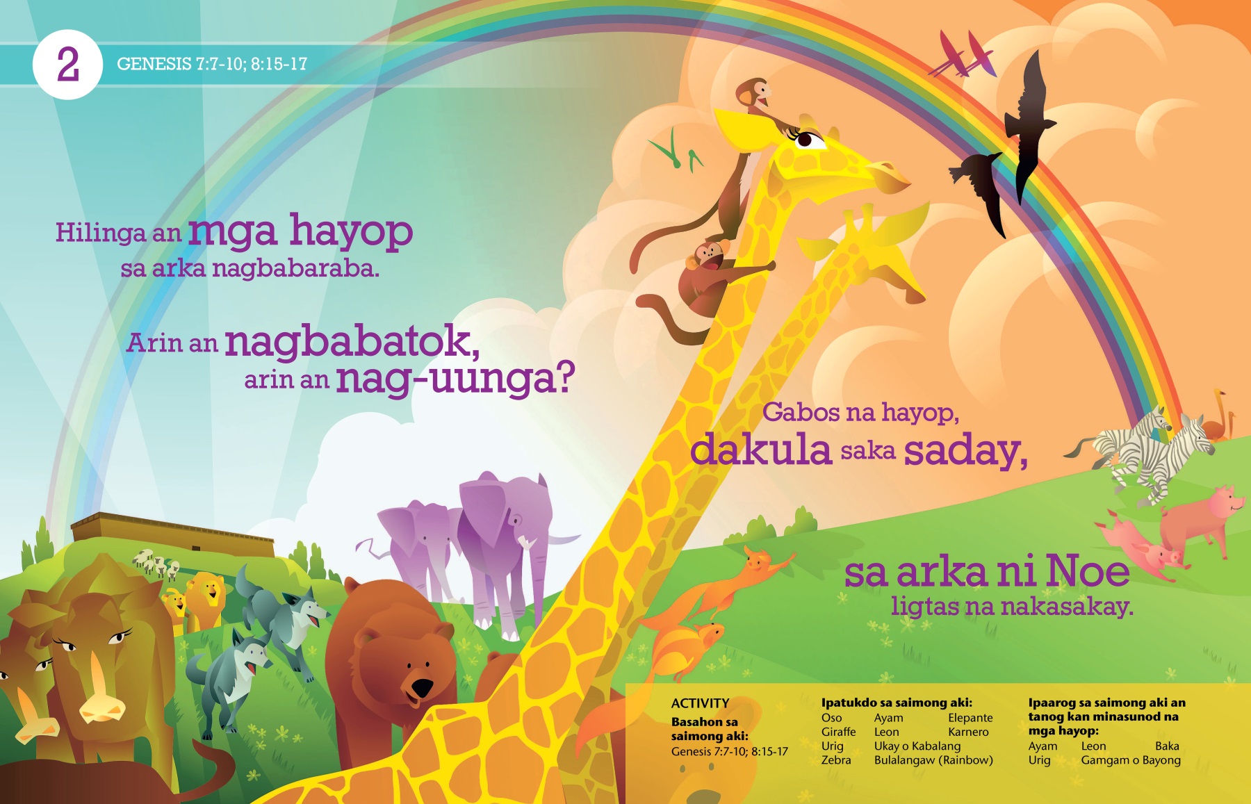 Gabos na hayop, dakula saka saday, sa arka ni Noe ligtas na nakasakay.