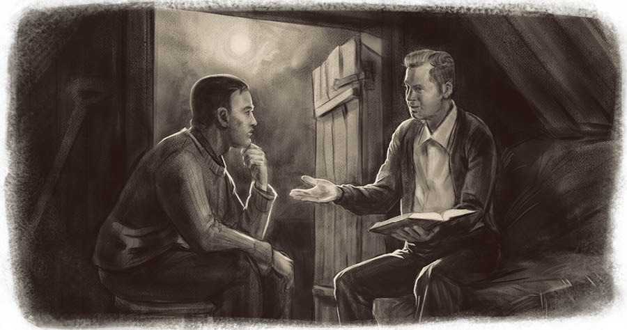 Algunes nits, Georgi i Dímitri es quedaven desperts fins molt tard parlant de la Bíblia