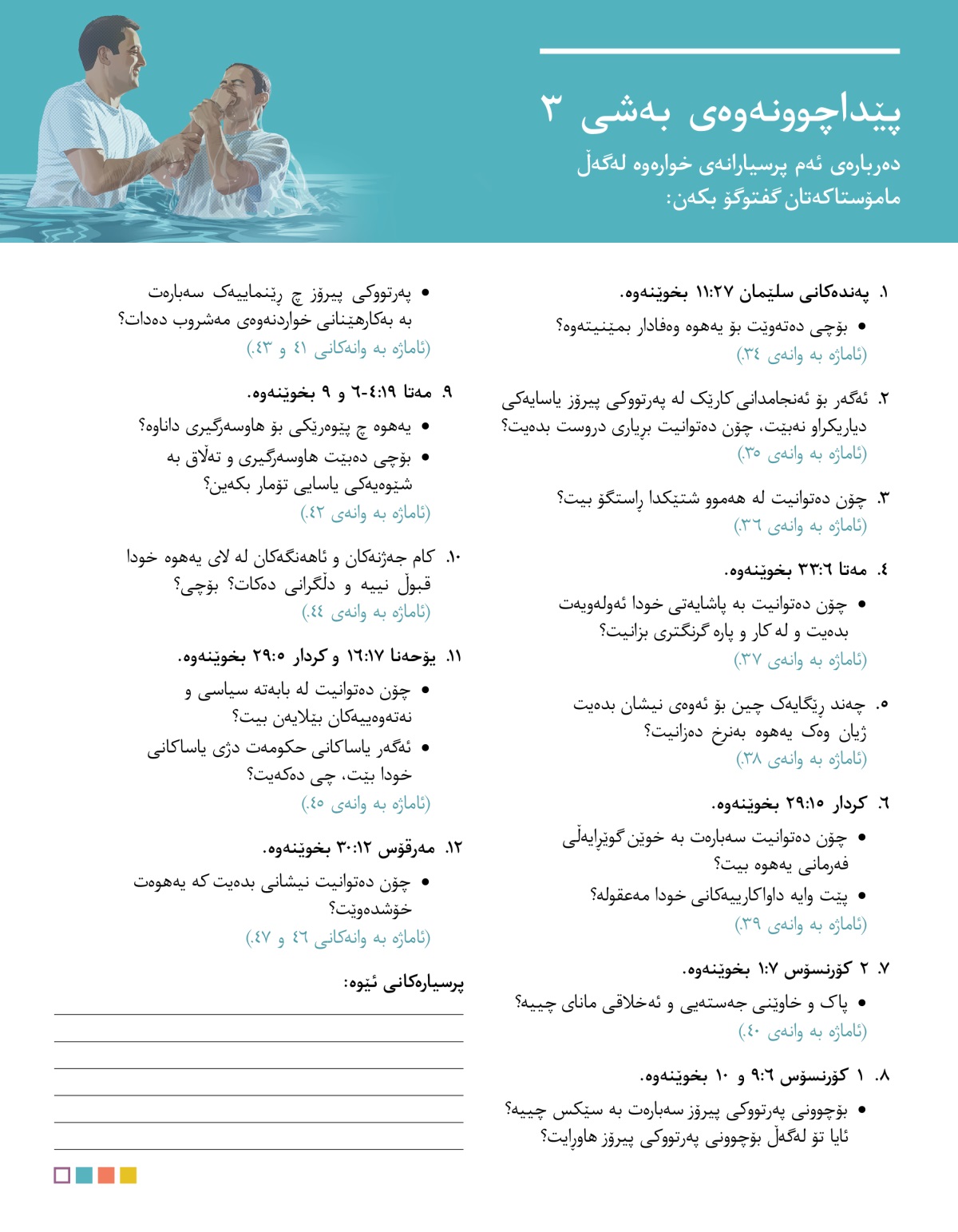 دەربارەی ئەم پرسیارانەی خوارەوە لەگەڵ مامۆستاکەتان گفتوگۆ بکەن: