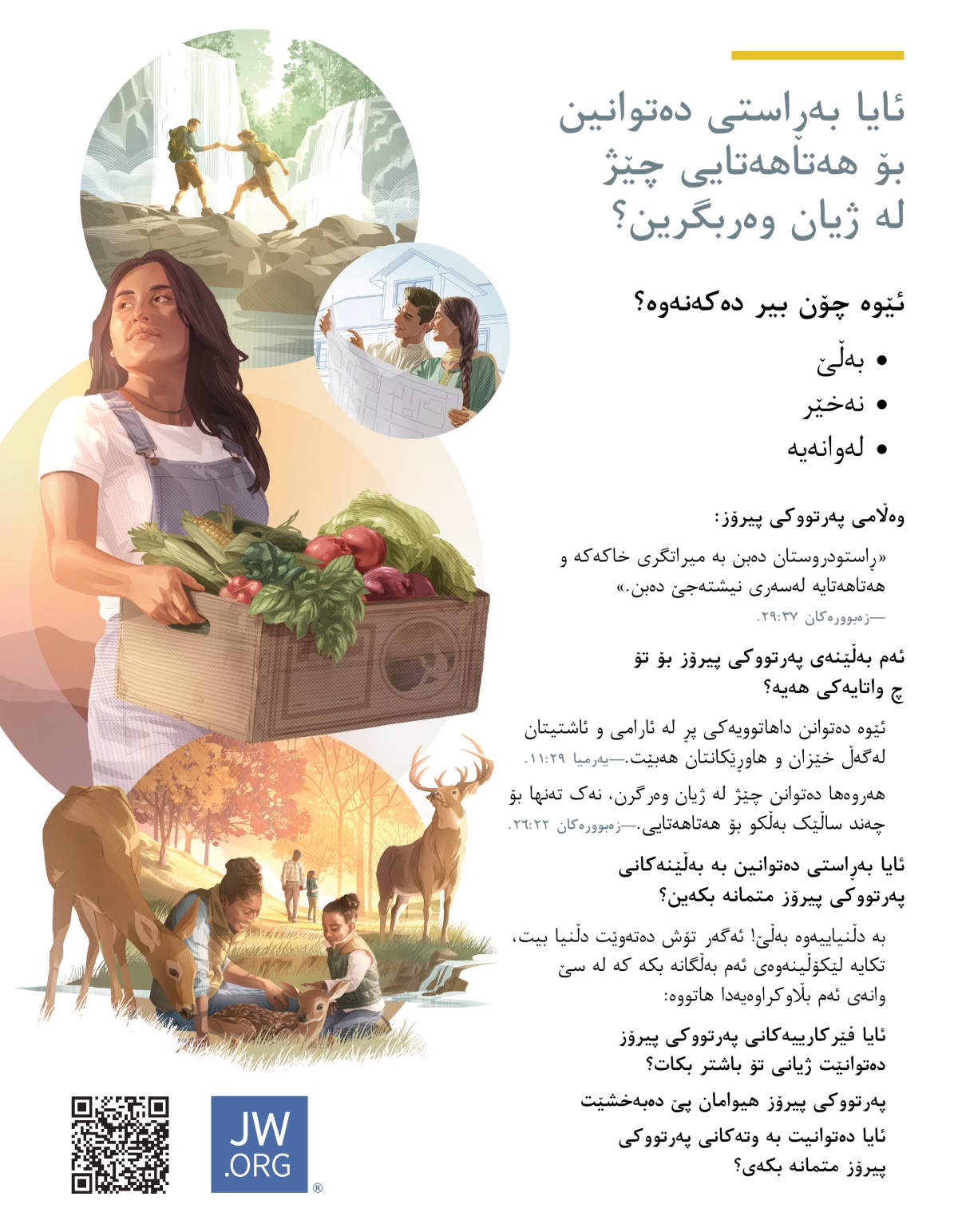 هەروەها دەتوانن چێژ لە ژیان وەرگرن، نەک تەنها بۆ چەند ساڵێک بەڵکو بۆ هەتاهەتایی.—زەبوورەکان ٢٢:٢٦.