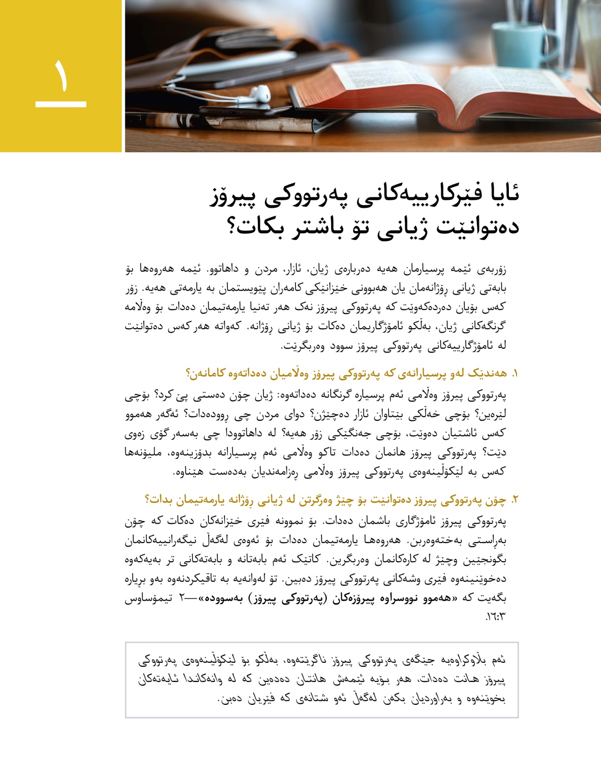 • ئایا فێرکارییە‌کانی پە‌رتووکی پیرۆز دە‌توانێت ژیانی تۆ باشتر بکات؟‏