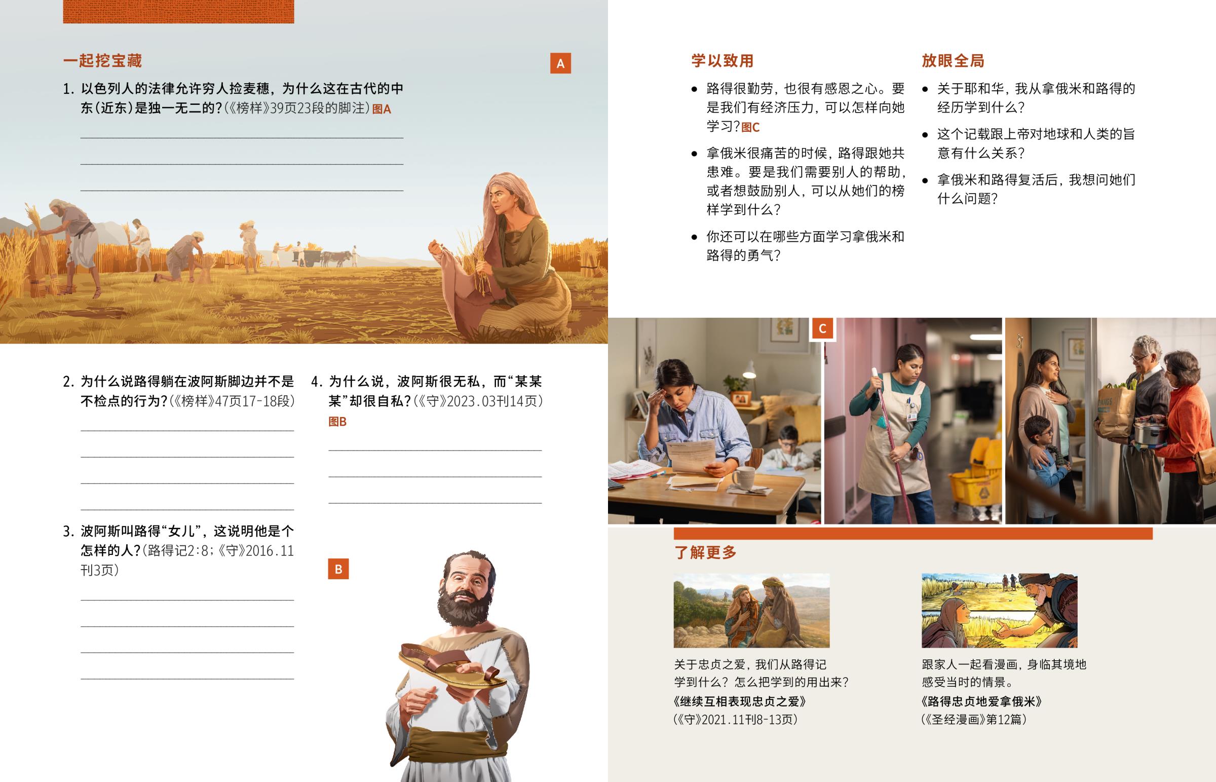 • 路得很勤劳,也很有感恩之心。要是我们有经济压力,可以怎样向她学习?图C