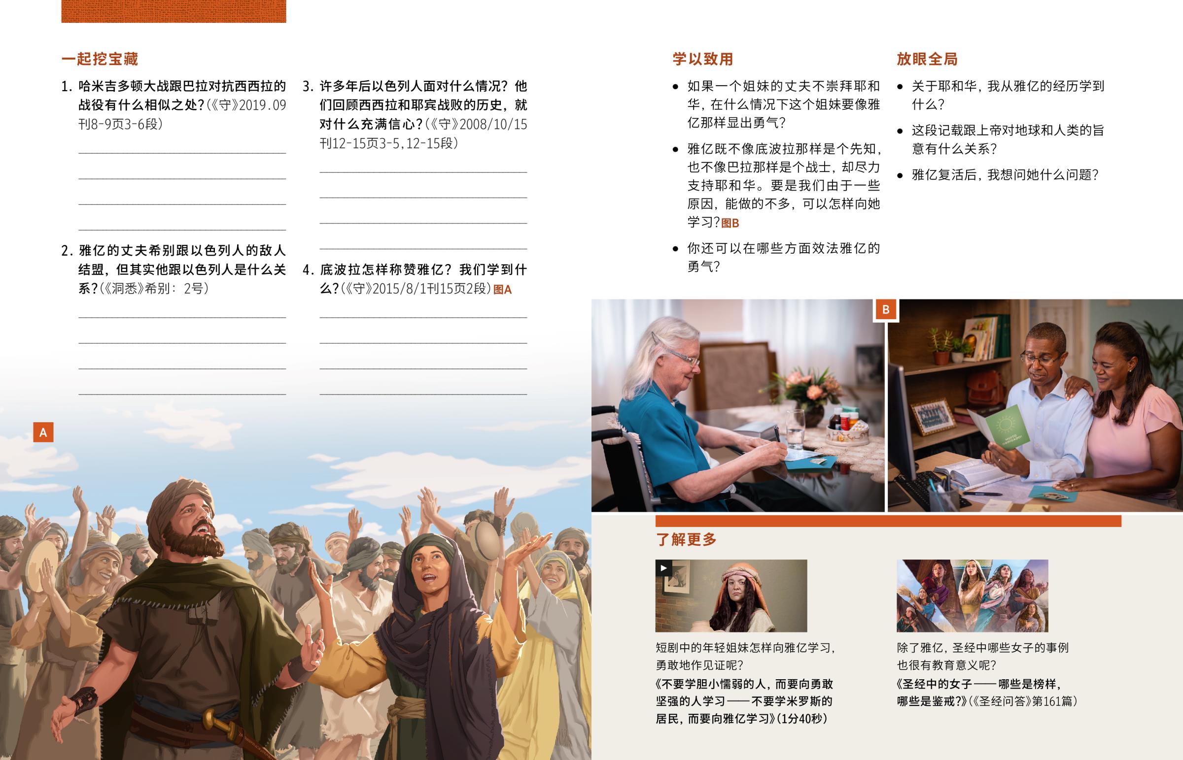 雅亿既不像底波拉那样是个先知,也不像巴拉那样是个战士,却尽力支持耶和华。要是我们由于一些原因,能做的不多,可以怎样向她学习?图B