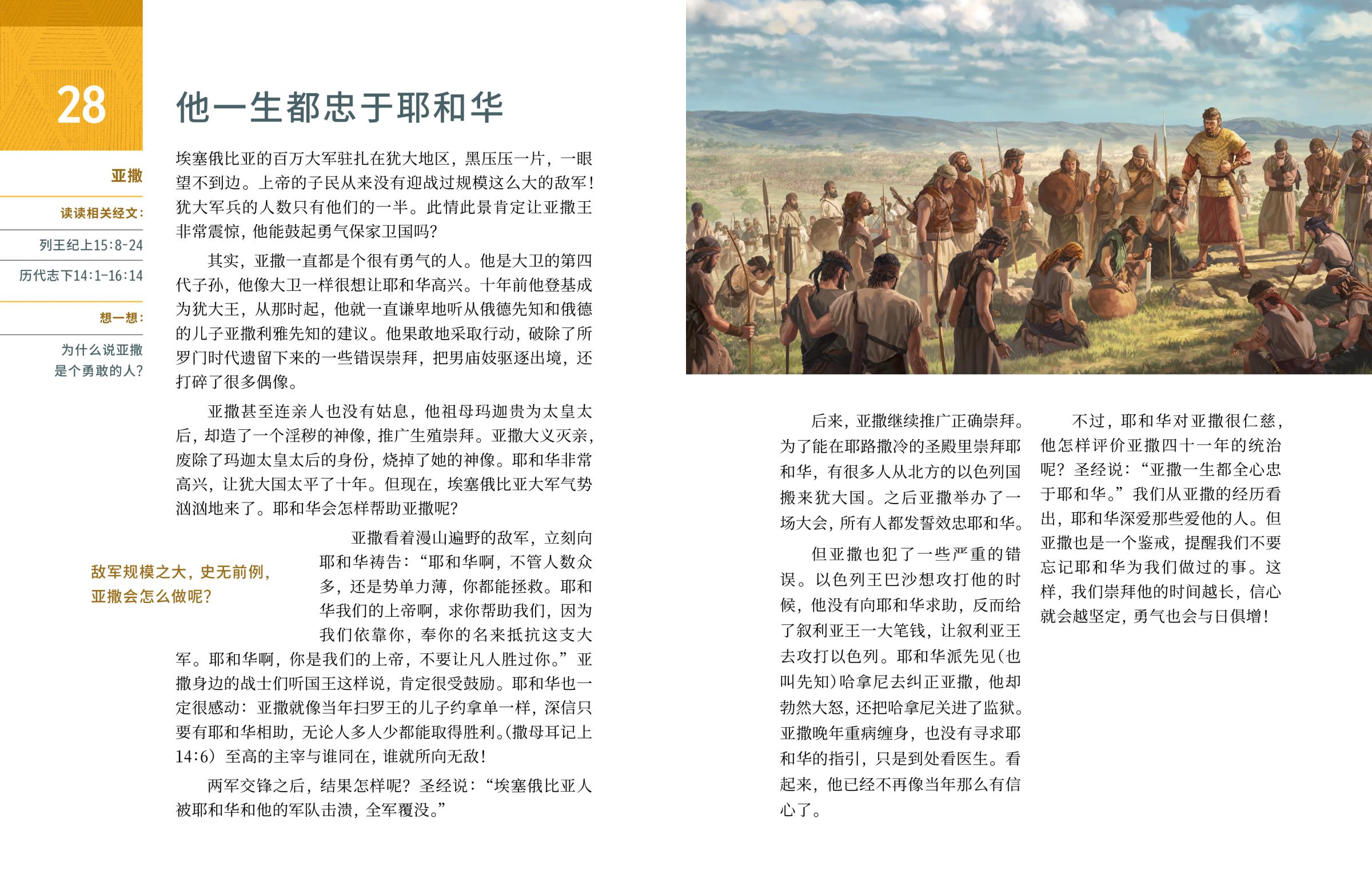 亚撒甚至连亲人也没有姑息,他祖母玛迦贵为太皇太后,却造了一个淫秽的神像,推广生殖崇拜。亚撒大义灭亲,废除了玛迦太皇太后的身份,烧掉了她的神像。耶和华非常高兴,让犹大国太平了十年。但现在,埃塞俄比亚大军气势汹汹地来了。耶和华会怎样帮助亚撒呢?