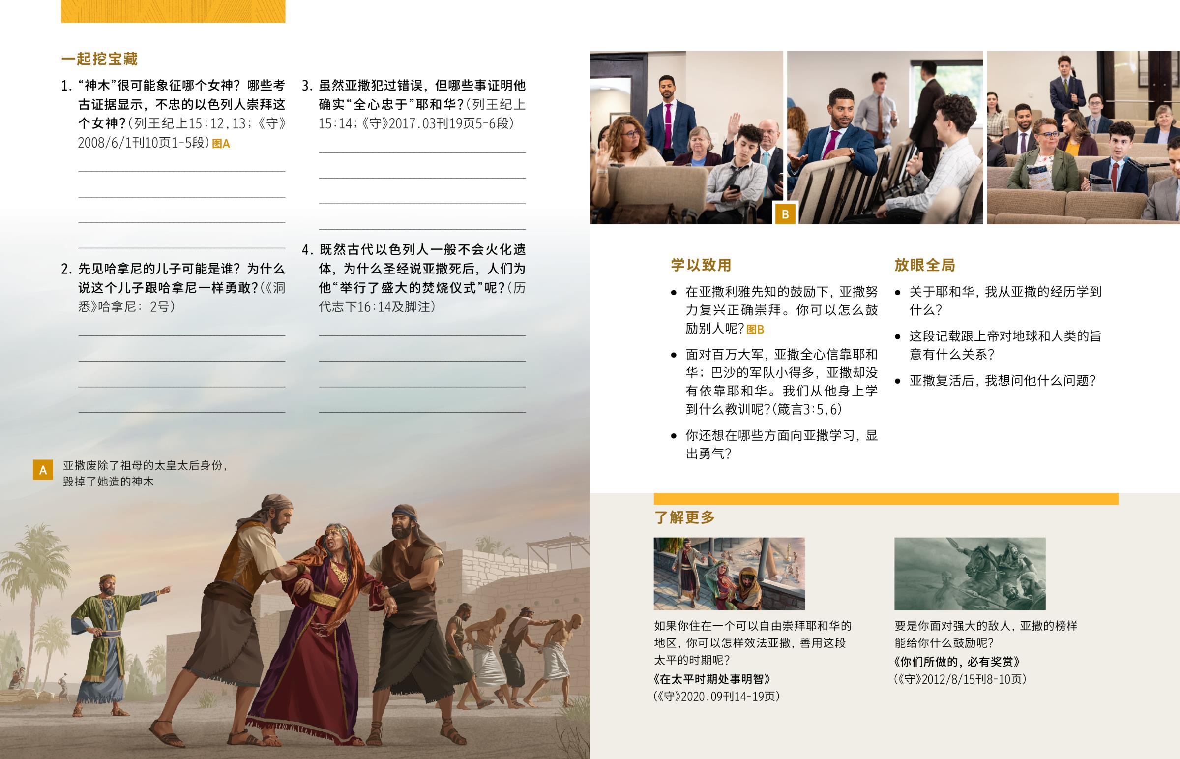• 在亚撒利雅先知的鼓励下,亚撒努力复兴正确崇拜。你可以怎么鼓励别人呢?图B