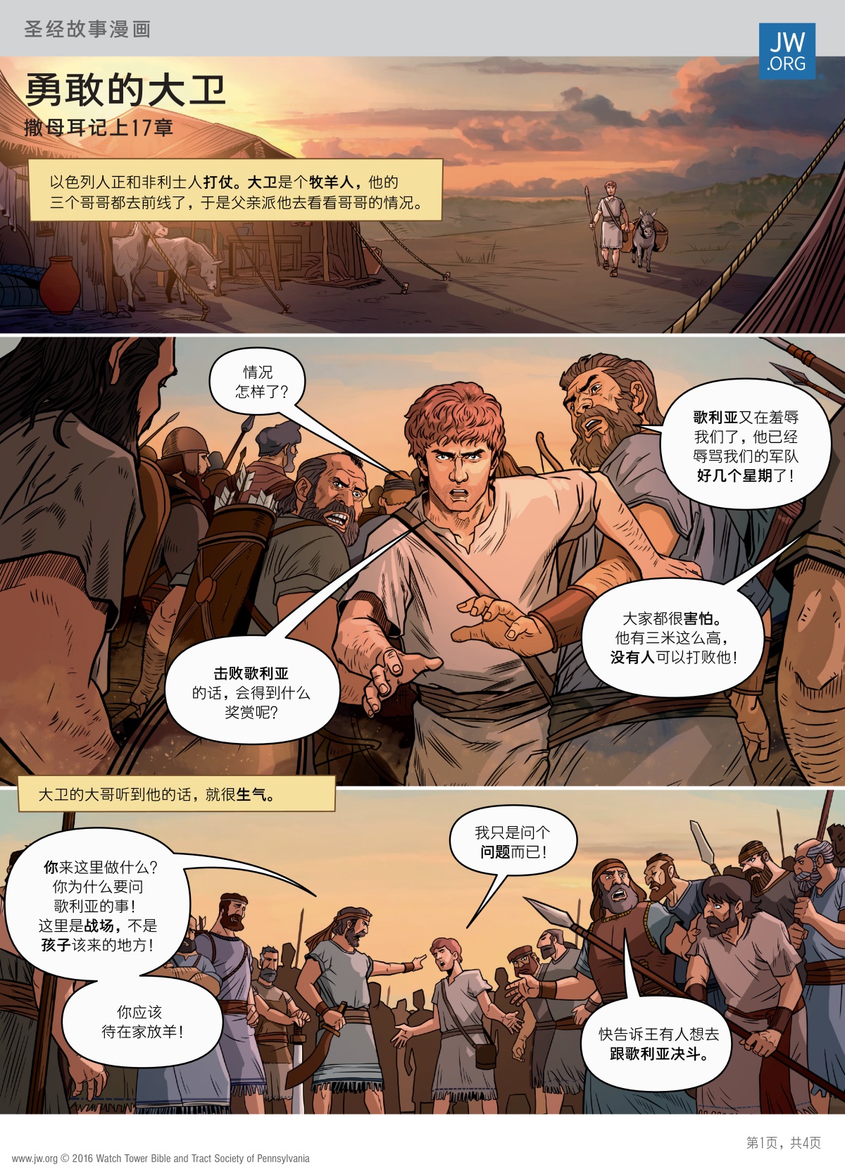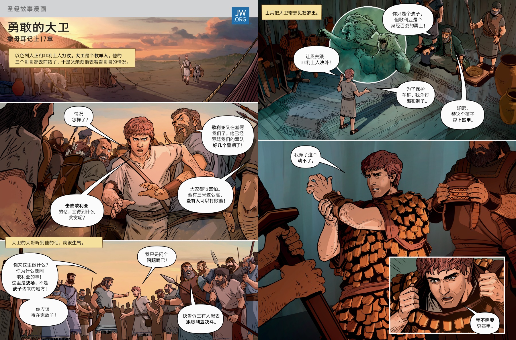 一位名叫大卫的男孩,因为对耶和华有信心,而能勇敢地击败巨人。