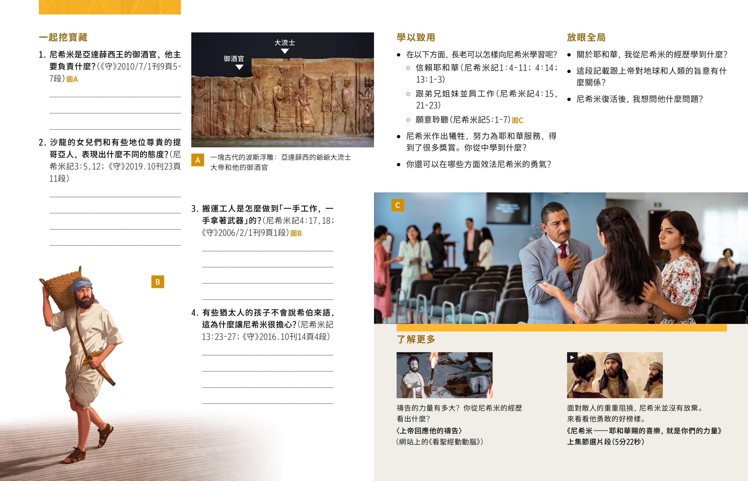 尼希米在波斯王亞達薛西手下擔任要職,但他心裡最重視的是耶和華的事。他怎麼知道耶路撒冷的情況呢?一天,他的兄弟從猶大省來到書珊,告訴他耶路撒冷的城牆還是一片廢墟,返鄉的人也很灰心,「處境艱難」。
