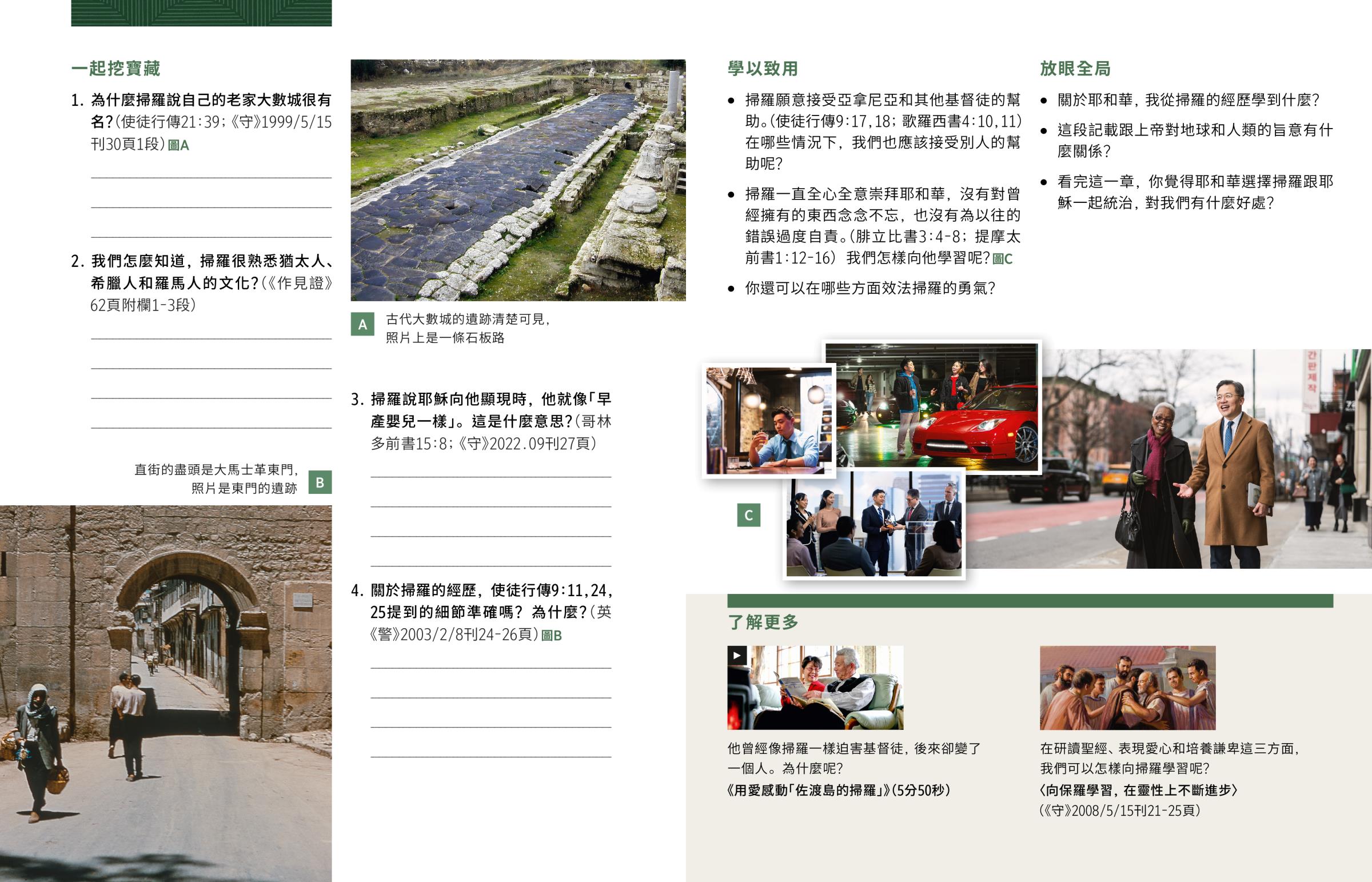 4.關於掃羅的經歷,使徒行傳9:11,24,25提到的細節準確嗎?為什麼?(英《警》2003/2/8刊24-26頁)圖B