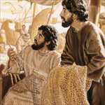 耶穌向人傳道差不多一年半以後,挑選了十二個人做他的使徒,把一些特別的工作交給他們。你知道十二個使徒叫什麼名字嗎?——讓我們來記一記他們的名字。你先看看畫中的十二個使徒,讀讀他們的名字,然後試著背出來,好嗎?