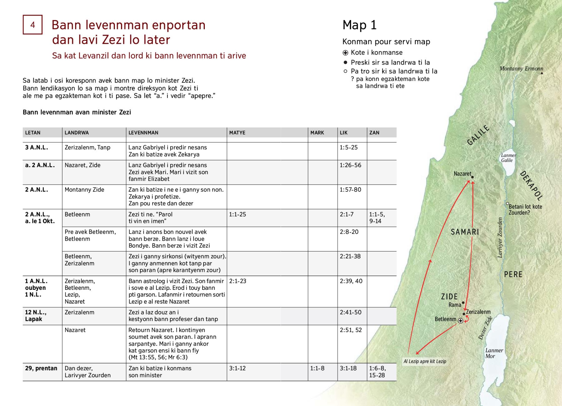 Bann astrolog i vizit Zezi. Son fanmir i sove e al Lezip. Erod i touy bann pti garson. Lafanmir i retournen sorti Lezip e al reste Nazaret |