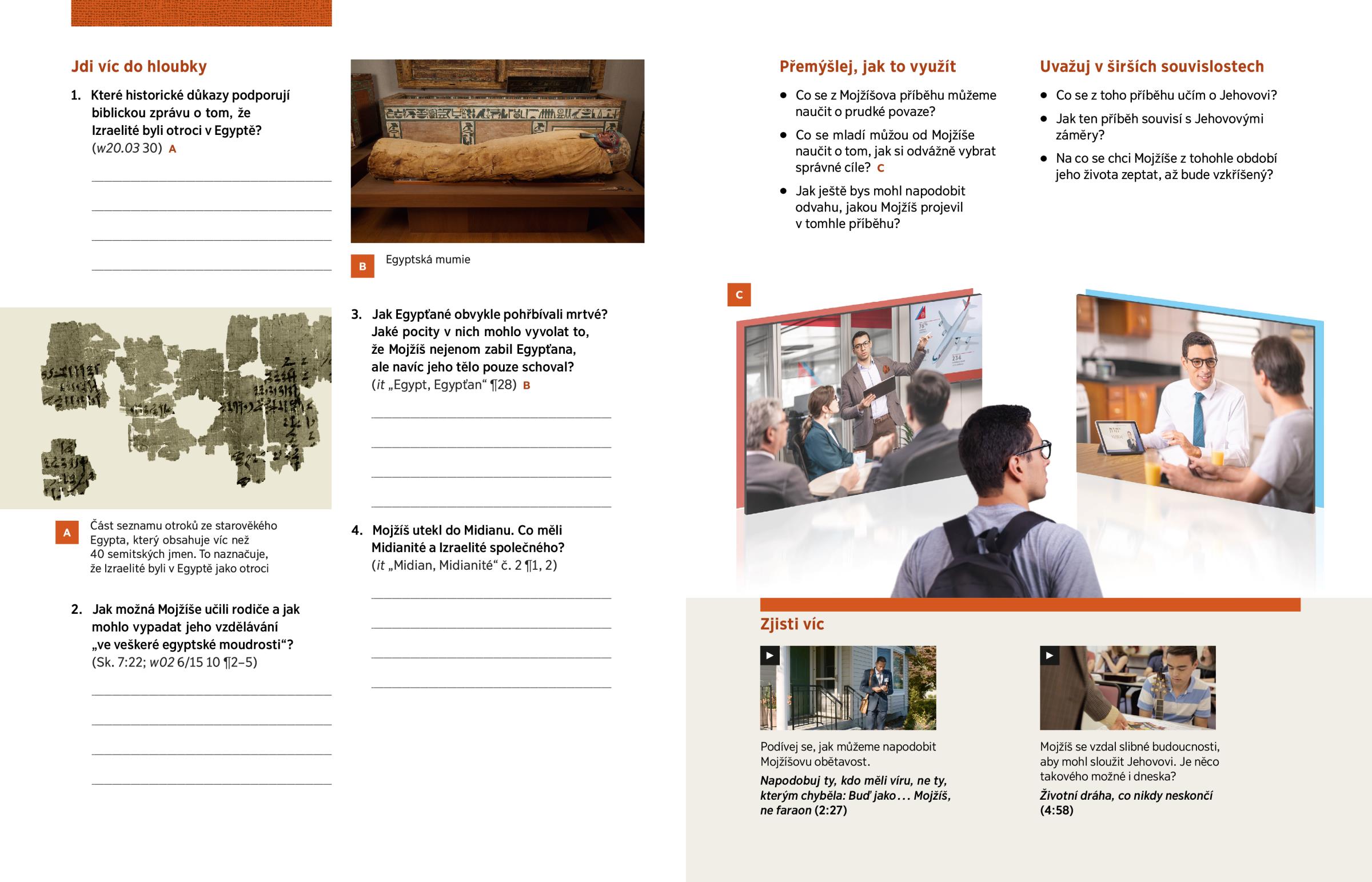 2. Jak možná Mojžíše učili rodiče a jak mohlo vypadat jeho vzdělávání „ve veškeré egyptské moudrosti“? (Sk. 7:22; w02 6/15 10 ¶2–5)