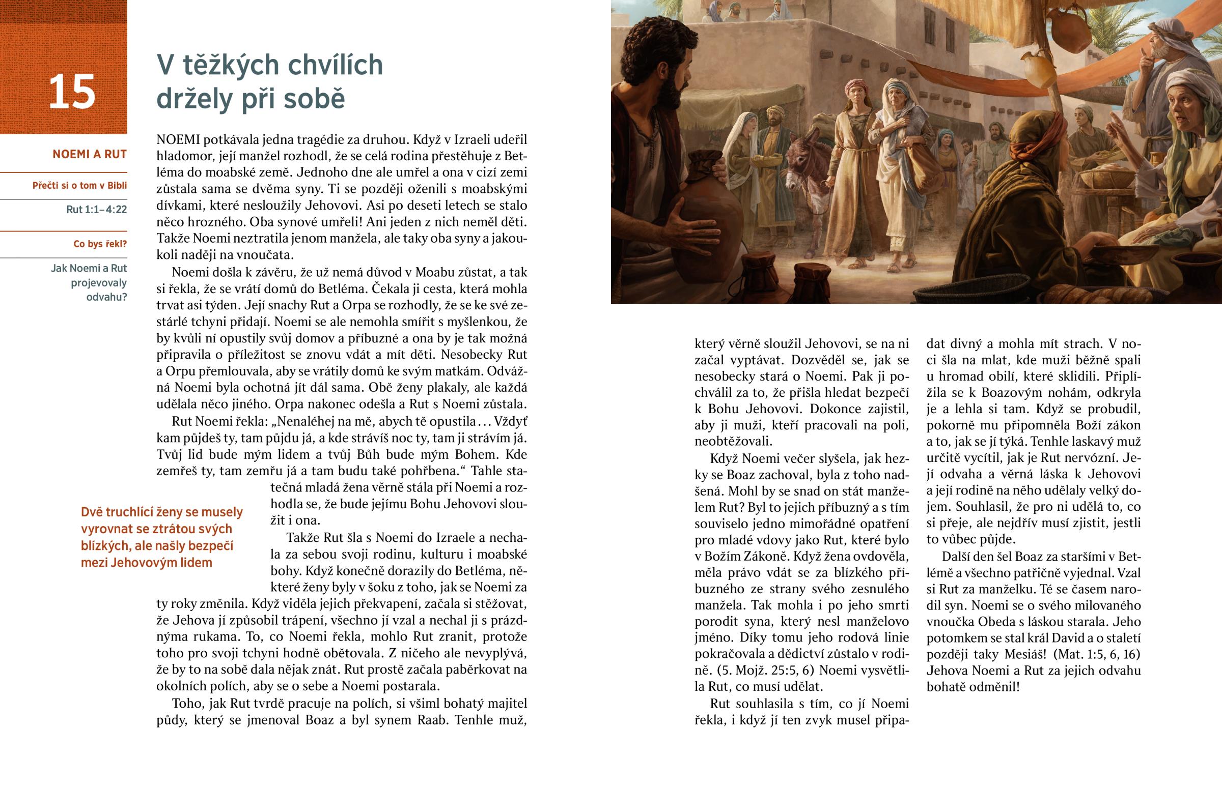 Další den šel Boaz za staršími v Betlémě a všechno patřičně vyjednal. Vzal si Rut za manželku. Té se časem narodil syn. Noemi se o svého milovaného vnoučka Obeda s láskou starala. Jeho potomkem se stal král David a o staletí později taky Mesiáš! (Mat. 1:5, 6, 16) Jehova Noemi a Rut za jejich odvahu bohatě odměnil!