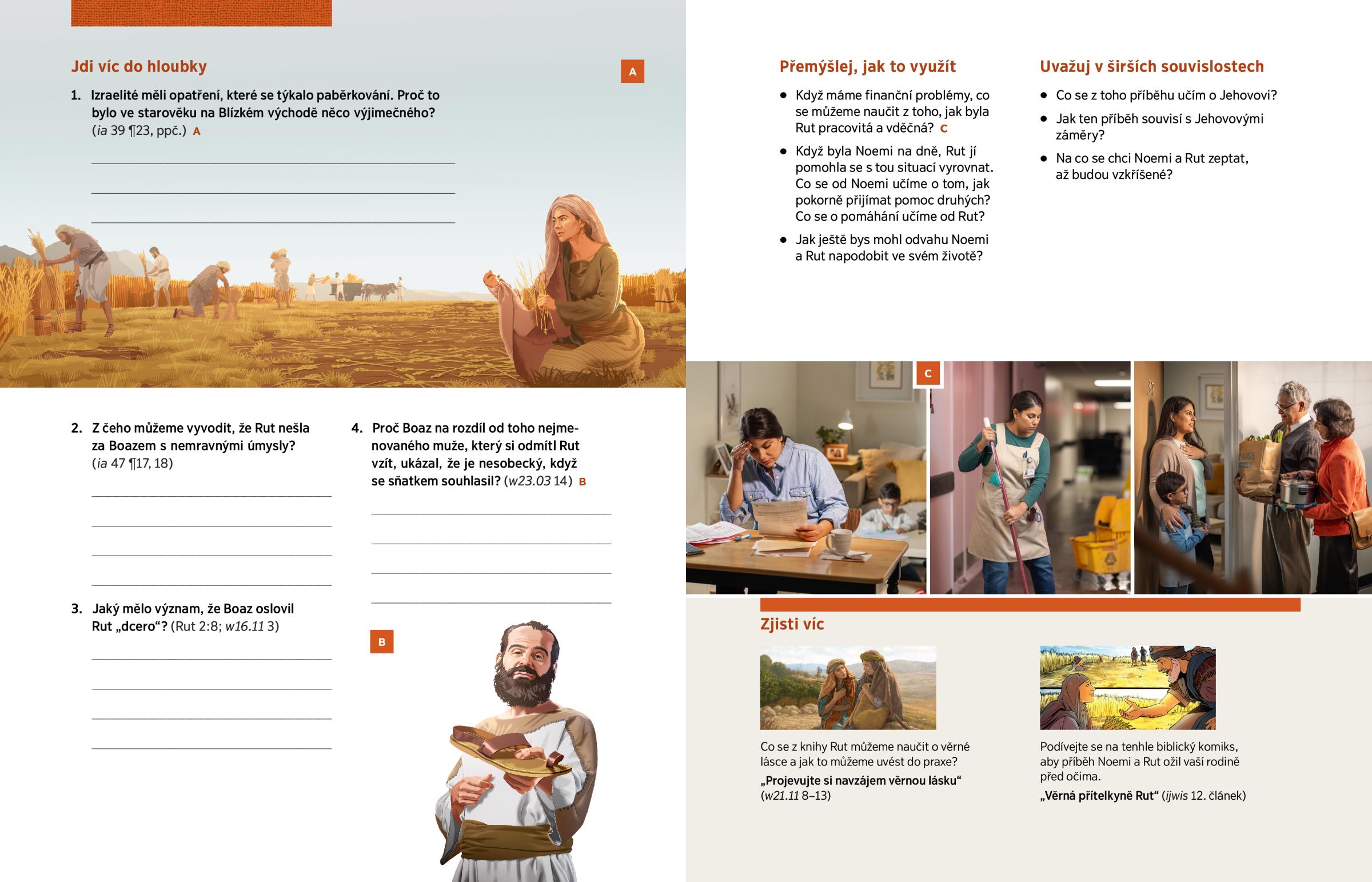 Když byla Noemi na dně, Rut jí pomohla se s tou situací vyrovnat. Co se od Noemi učíme o tom, jak pokorně přijímat pomoc druhých? Co se o pomáhání učíme od Rut?