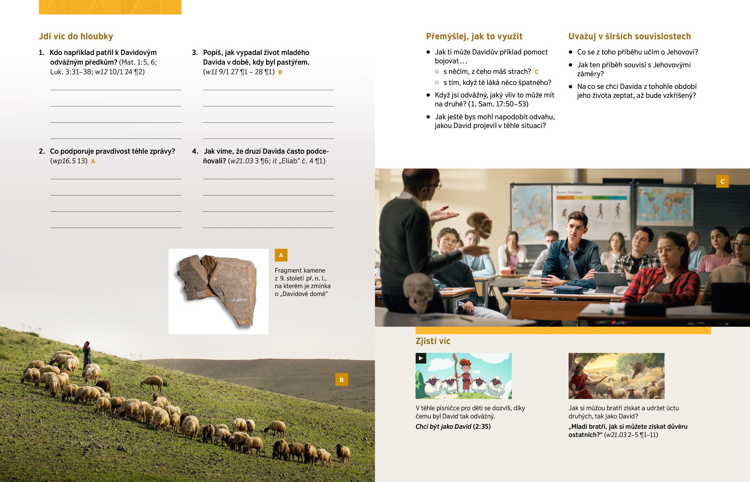 3. Popiš, jak vypadal život mladého Davida v době, kdy byl pastýřem. (w11 9/1 27 ¶1 – 28 ¶1) B