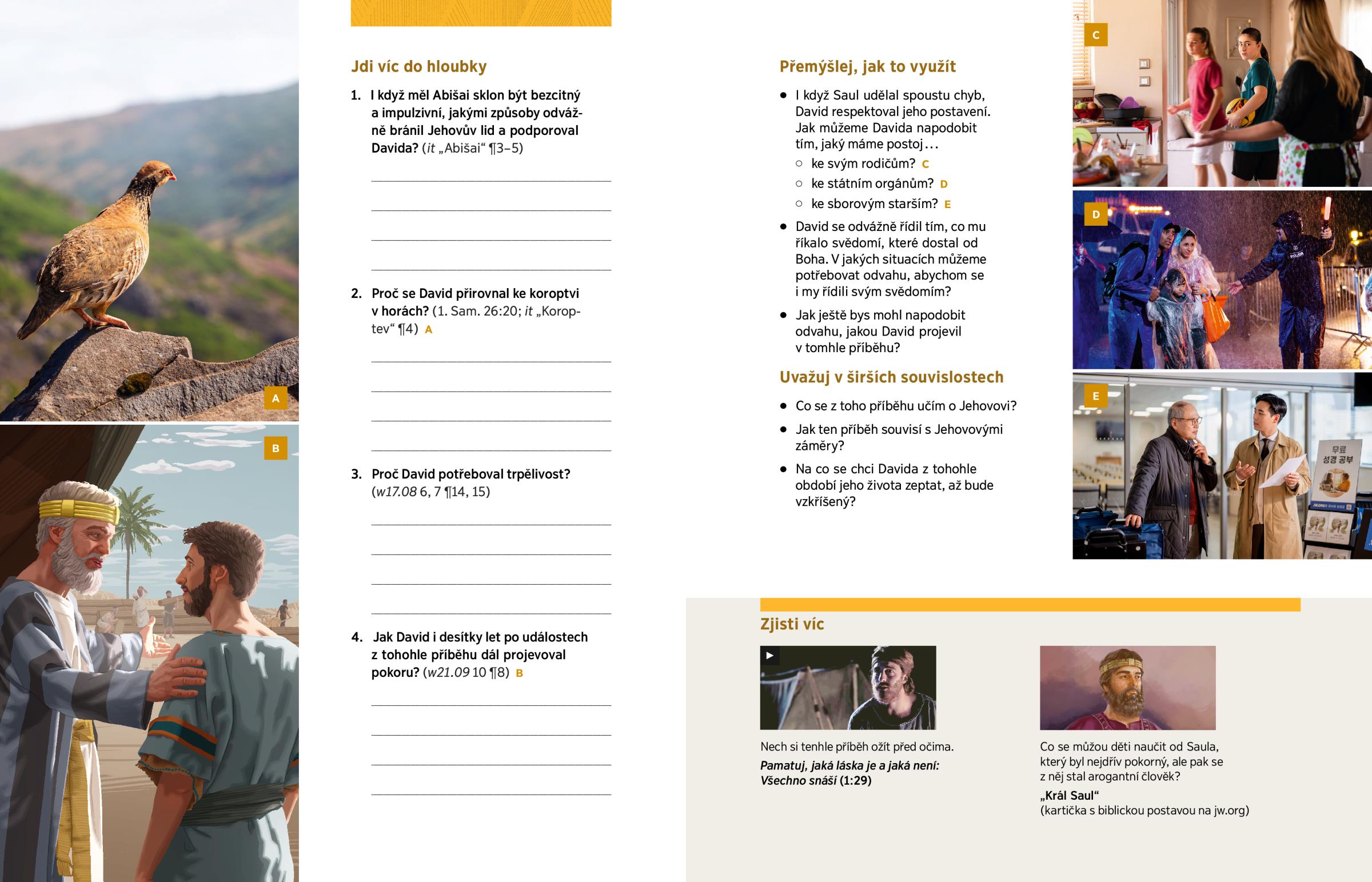 David se odvážně řídil tím, co mu říkalo svědomí, které dostal od Boha. V jakých situacích můžeme potřebovat odvahu, abychom se i my řídili svým svědomím?