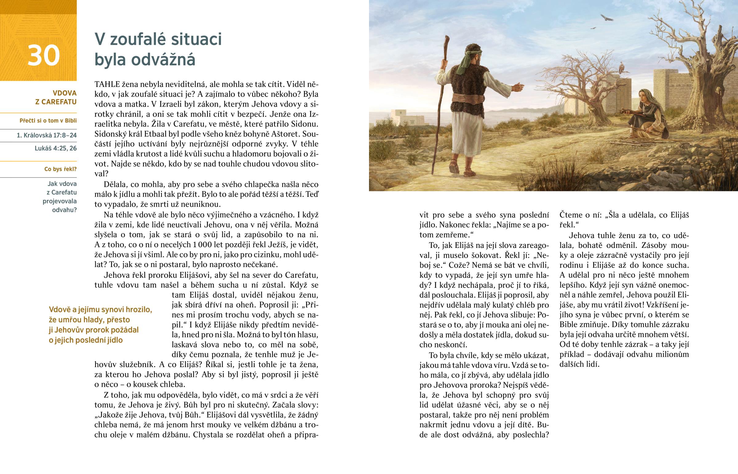 TAHLE žena nebyla neviditelná, ale mohla se tak cítit. Viděl někdo, v jak zoufalé situaci je? A zajímalo to vůbec někoho? Byla vdova a matka. V Izraeli byl zákon, kterým Jehova vdovy a sirotky chránil, a oni se tak mohli cítit v bezpečí. Jenže ona Izraelitka nebyla. Žila v Carefatu, ve městě, které patřilo Sidonu. Sidonský král Etbaal byl podle všeho kněz bohyně Aštoret. Součástí jejího uctívání byly nejrůznější odporné zvyky. V téhle zemi vládla krutost a lidé kvůli suchu a hladomoru bojovali o život. Najde se někdo, kdo by se nad touhle chudou vdovou slitoval?