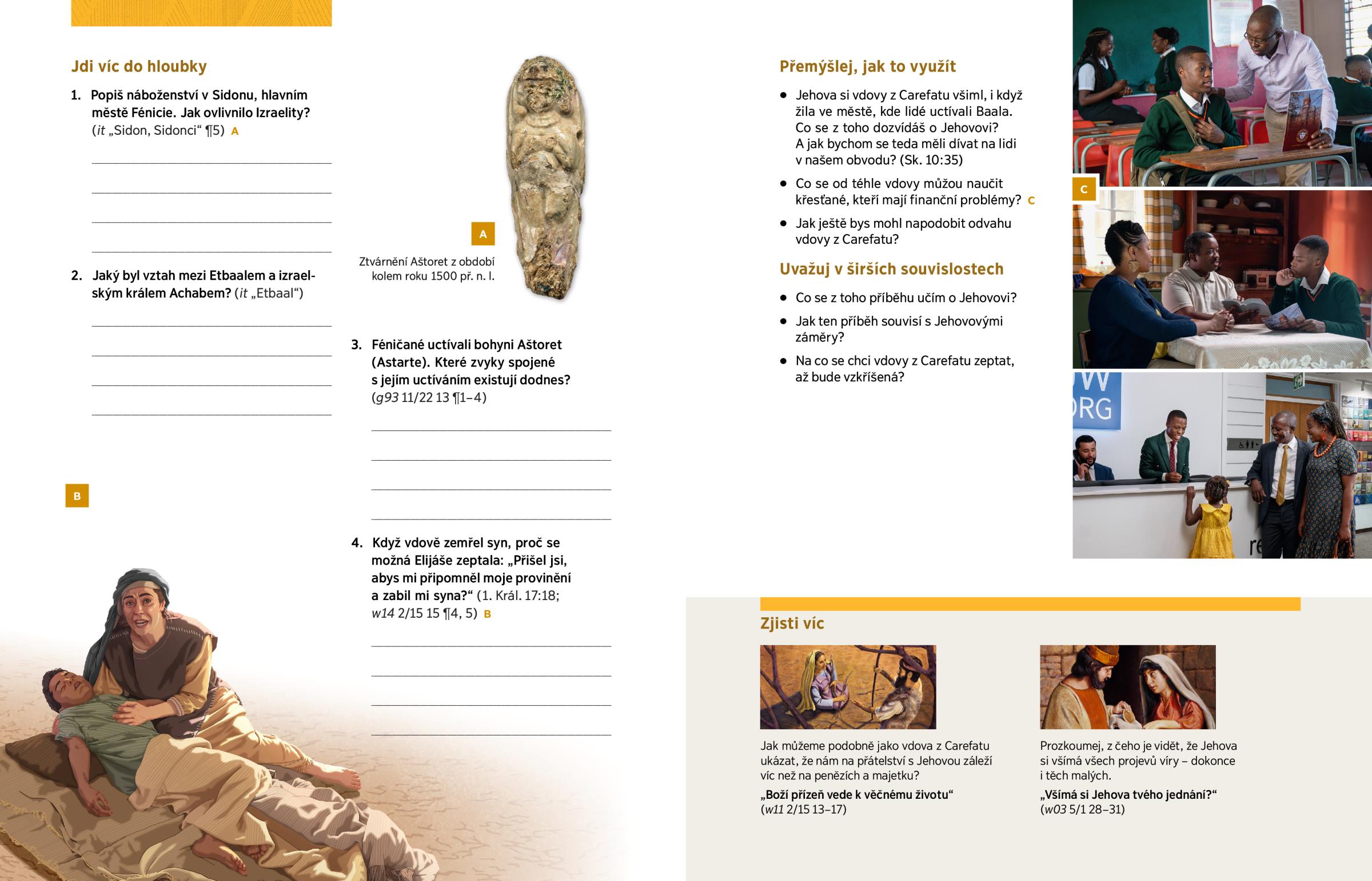 Jehova si vdovy z Carefatu všiml, i když žila ve městě, kde lidé uctívali Baala. Co se z toho dozvídáš o Jehovovi? A jak bychom se teda měli dívat na lidi v našem obvodu? (Sk. 10:35)