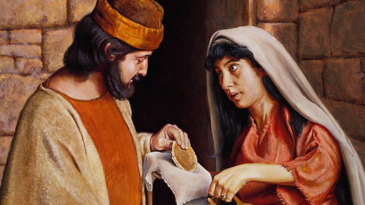 Jehova řekl proroku Elijášovi, aby šel na sever do Carefatu, tuhle vdovu tam našel a během sucha u ní zůstal. Když se tam Elijáš dostal, uviděl nějakou ženu, jak sbírá dříví na oheň. Poprosil ji: „Přines mi prosím trochu vody, abych se napil.“ I když Elijáše nikdy předtím neviděla, hned pro ni šla. Možná to byl tón hlasu, laskavá slova nebo to, co měl na sobě, díky čemu poznala, že tenhle muž je Jehovův služebník. A co Elijáš? Říkal si, jestli tohle je ta žena, za kterou ho Jehova poslal? Aby si byl jistý, poprosil ji ještě o něco – o kousek chleba.
