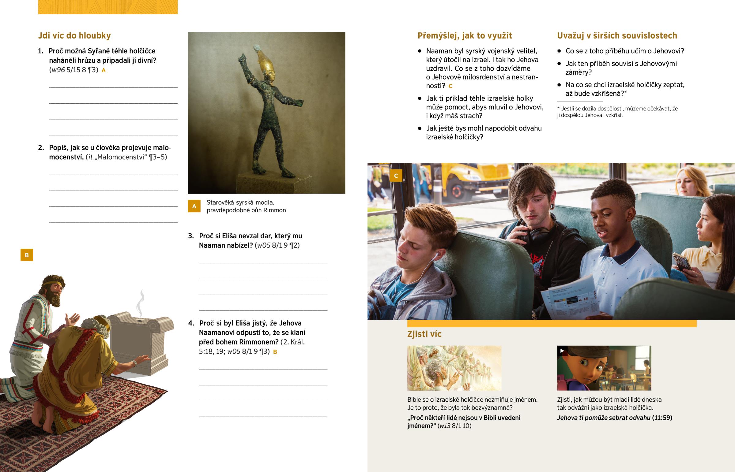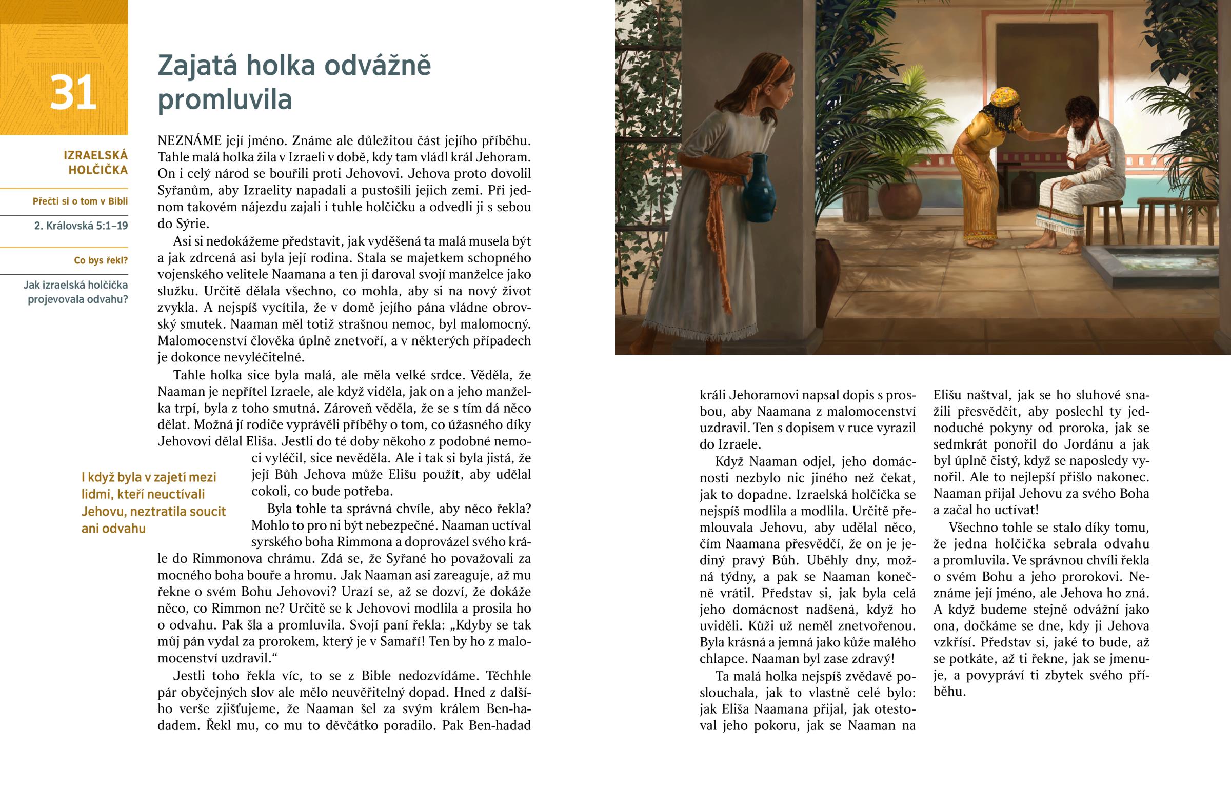 Všechno tohle se stalo díky tomu, že jedna holčička sebrala odvahu a promluvila. Ve správnou chvíli řekla o svém Bohu a jeho prorokovi. Neznáme její jméno, ale Jehova ho zná. A když budeme stejně odvážní jako ona, dočkáme se dne, kdy ji Jehova vzkřísí. Představ si, jaké to bude, až se potkáte, až ti řekne, jak se jmenuje, a povypráví ti zbytek svého příběhu.