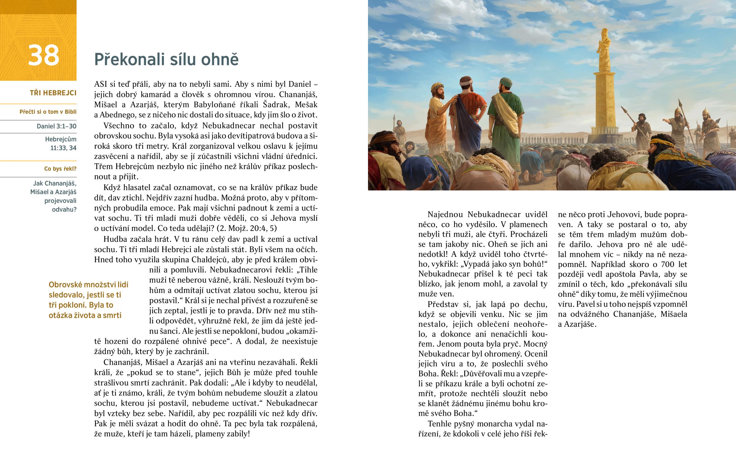 ASI si teď přáli, aby na to nebyli sami. Aby s nimi byl Daniel – jejich dobrý kamarád a člověk s ohromnou vírou. Chananjáš, Mišael a Azarjáš, kterým Babyloňané říkali Šadrak, Mešak a Abednego, se z ničeho nic dostali do situace, kdy jim šlo o život.