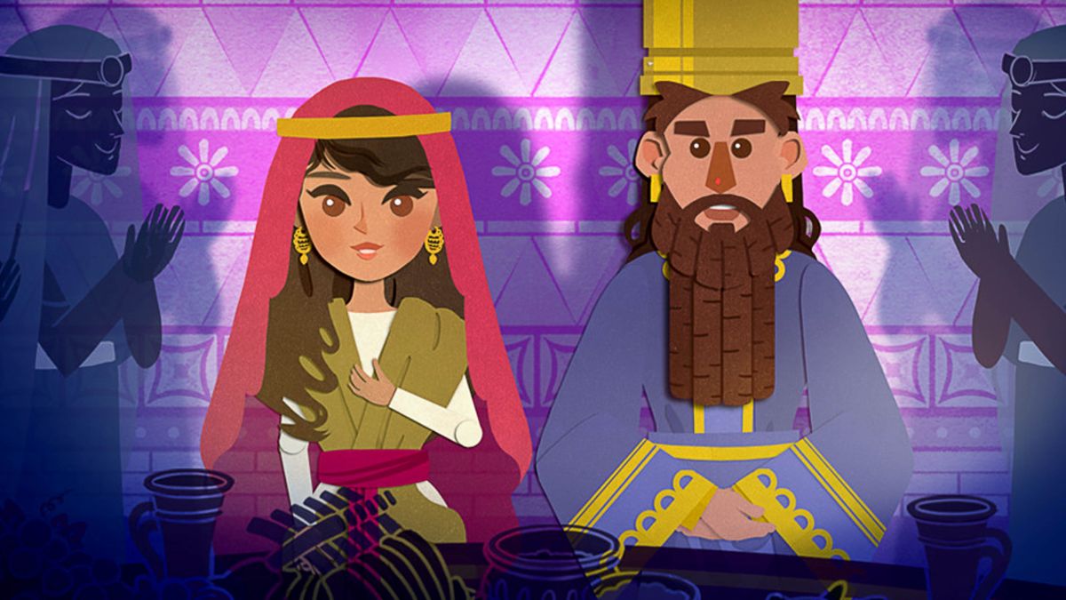 V paláci si „získávala přízeň každého, kdo ji viděl“. Po 12 měsících, kdy podstoupila nejrůznější zkrášlovací kúry, ji přivedli před krále. Ze všech dívek ho zaujala nejvíc, a proto si vybral právě ji. Tak se z ní stala královna mocné světové říše! Ale dál se držela toho, co jí Mordekai kladl na srdce, a o svém původu mlčela.