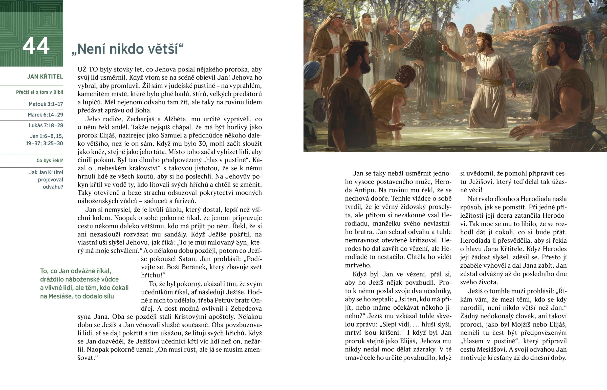 Jeho rodiče, Zecharjáš a Alžběta, mu určitě vyprávěli, co o něm řekl anděl. Takže nejspíš chápal, že má být horlivý jako prorok Elijáš, nazirejec jako Samuel a předchůdce někoho daleko většího, než je on sám. Když mu bylo 30, mohl začít sloužit jako kněz, stejně jako jeho táta. Místo toho začal vybízet lidi, aby činili pokání. Byl ten dlouho předpovězený „hlas v pustině“. Kázal o „nebeském království“ s takovou jistotou, že se k němu hrnuli lidé ze všech koutů, aby si ho poslechli. Na Jehovův pokyn křtil ve vodě ty, kdo litovali svých hříchů a chtěli se změnit. Taky otevřeně a beze strachu odsuzoval pokrytectví mocných náboženských vůdců – saduceů a farizeů.