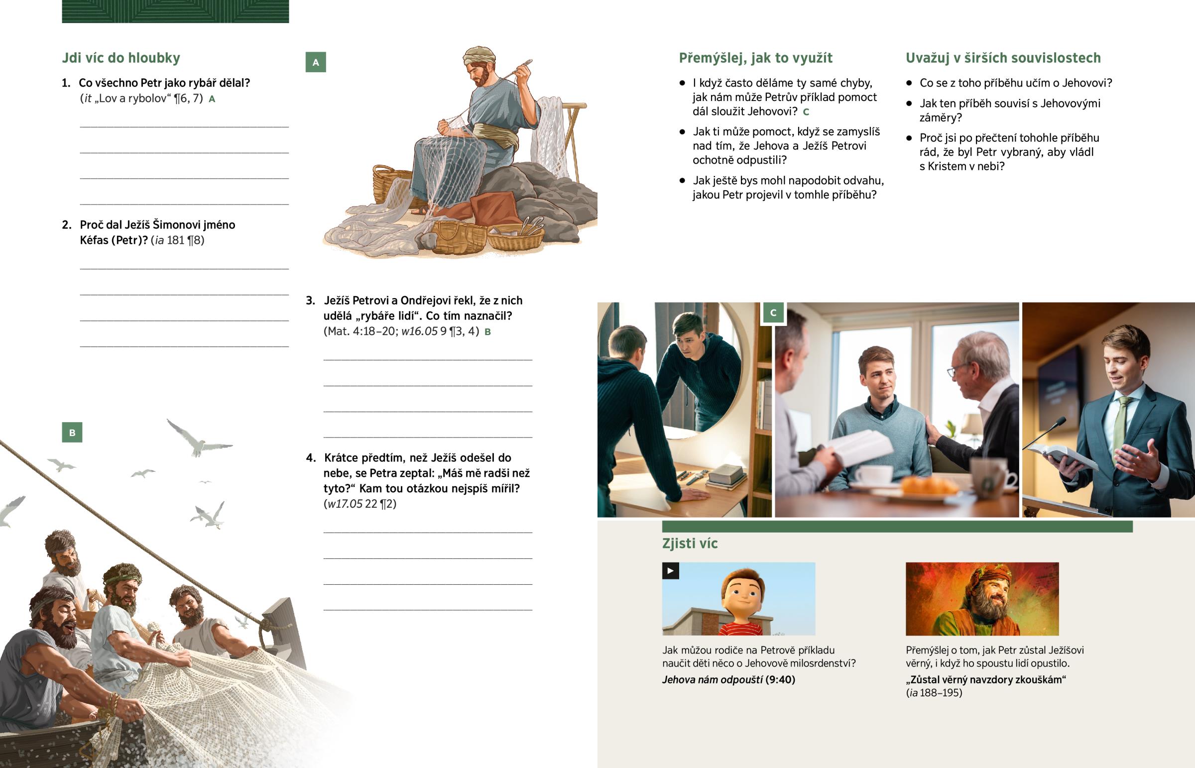 1. Co všechno Petr jako rybář dělal? (it „Lov a rybolov“ ¶6, 7) A