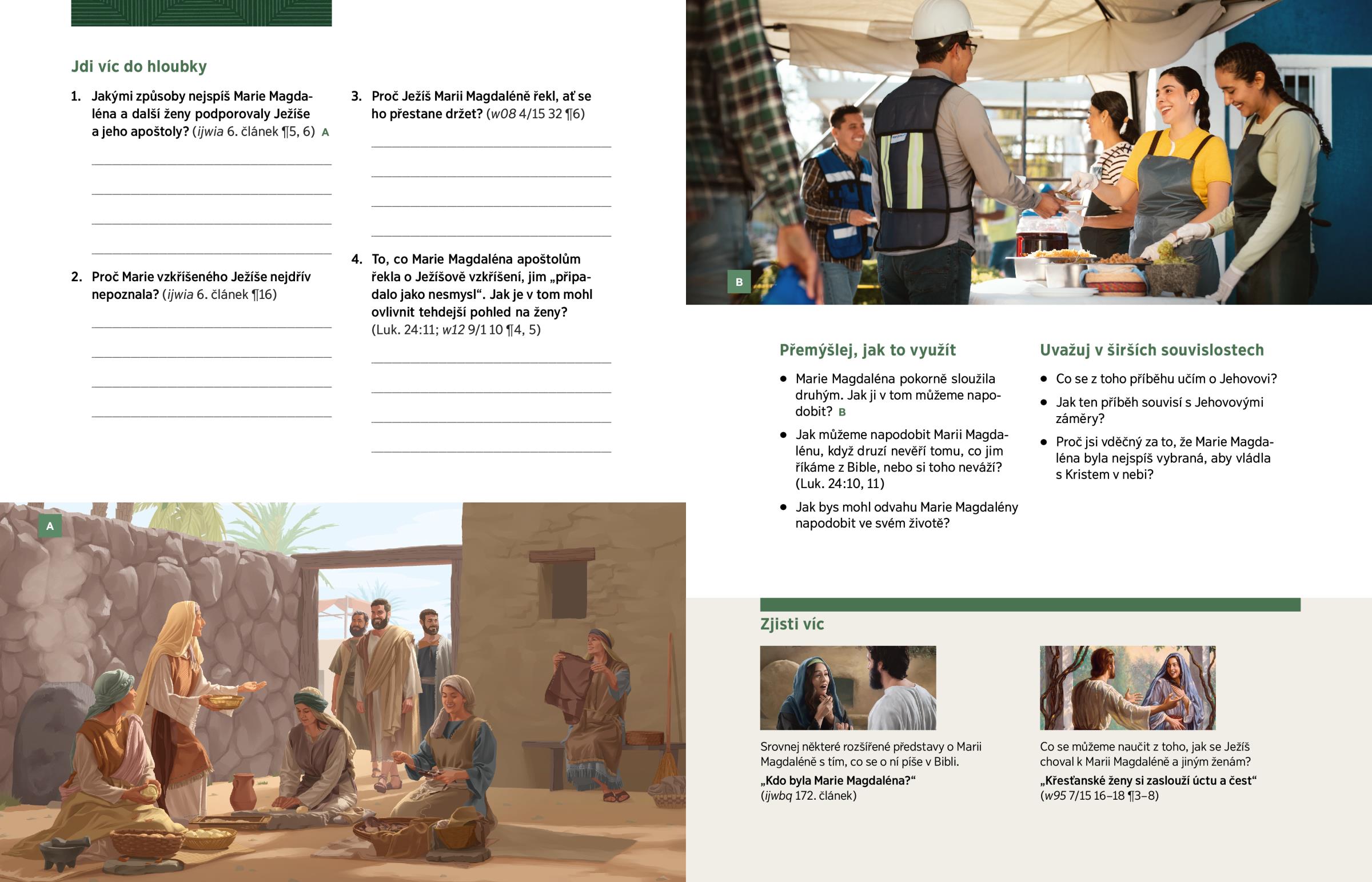 1. Jakými způsoby nejspíš Marie Magdaléna a další ženy podporovaly Ježíše a jeho apoštoly? (ijwia 6. článek ¶5, 6) A