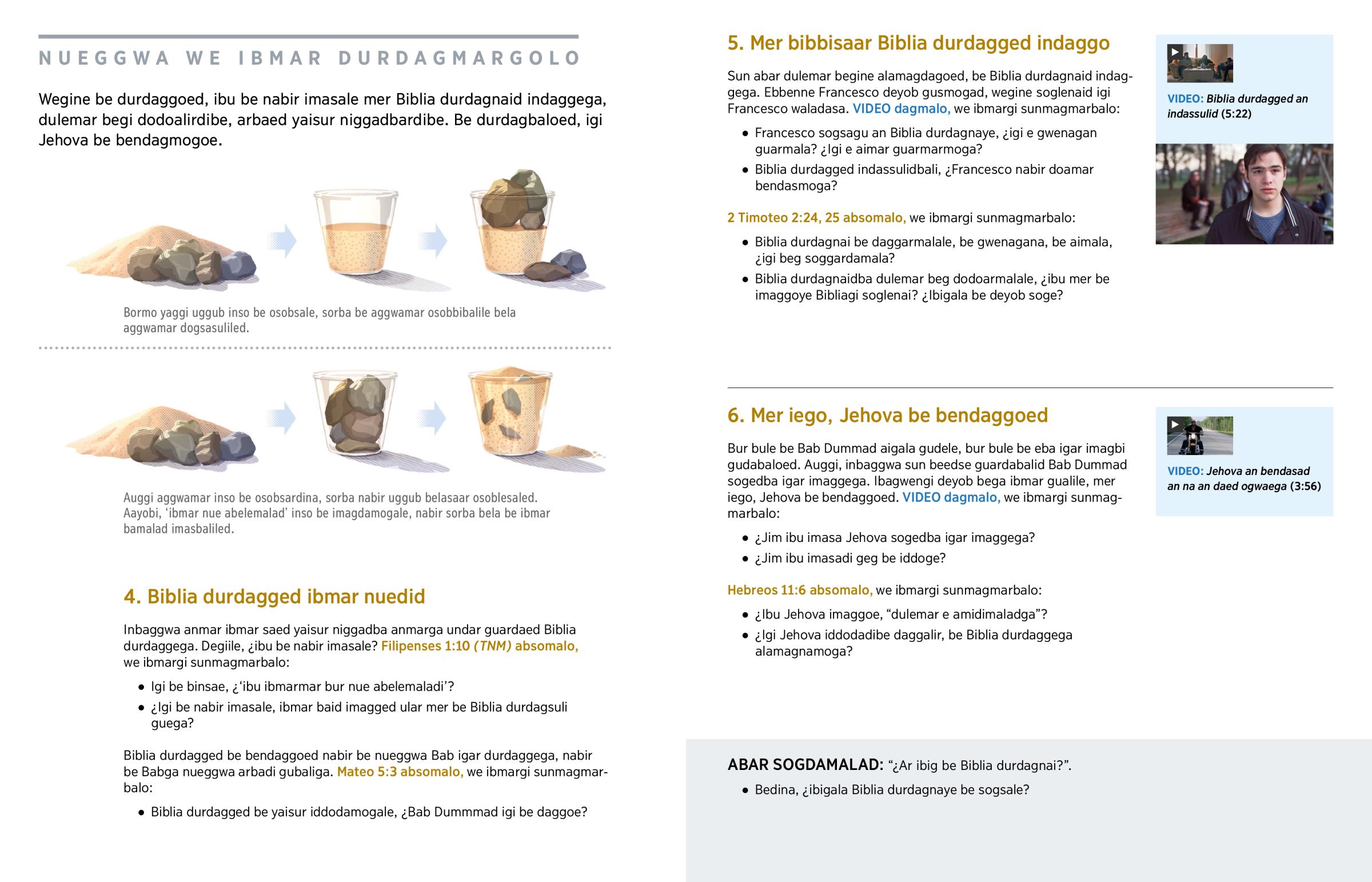 Wegine be durdaggoed, ibu be nabir imasale mer Biblia durdagnaid indaggega, dulemar begi dodoalirdibe, arbaed yaisur niggadbardibe. Be durdagbaloed, igi Jehova be bendagmogoe.