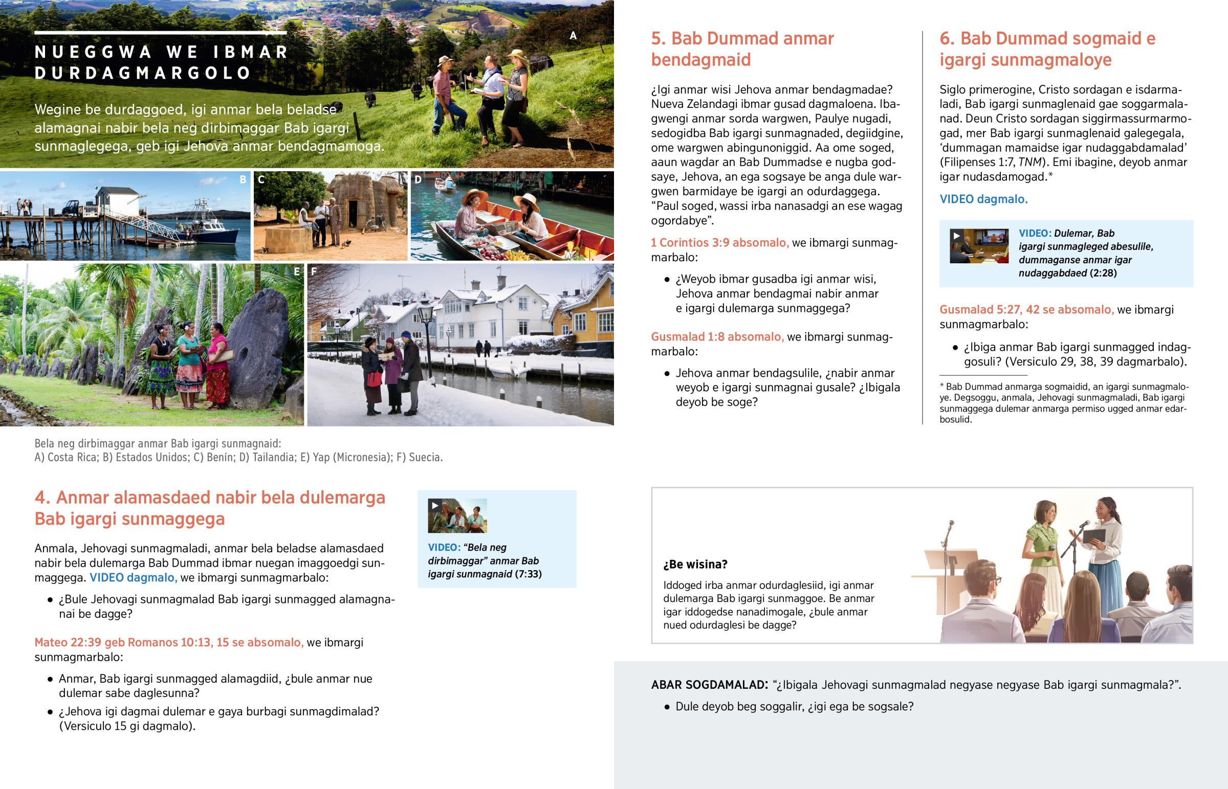 Isse nabbid, Jehova imaggoed e gobierno anmarga bela neg nudaggega. Bab Dummad dulemarga ibmar nuegan imaggosoggua, ¡aagala anmar dulemarga we ibmar sogbidamogad! Jesus abesad bela e sordagan we ibmargi dulemarga sunmagged (Mateo 28:​19, 20). Anmala, Jehovagi sunmagmaladi, ¿ibu anmar imagnasunna Jesus sogedba igar imaggega?