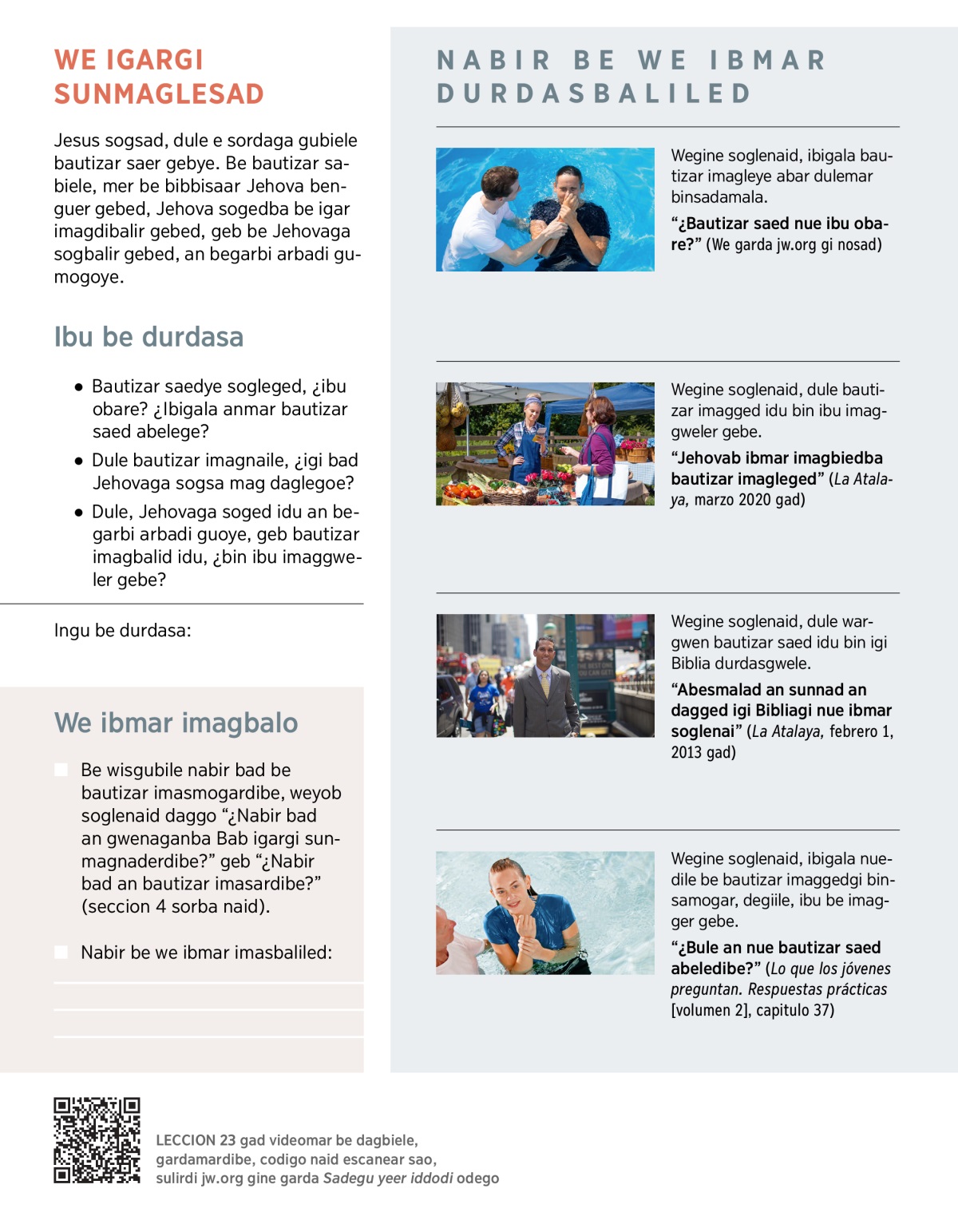 - Dule, Jehovaga soged idu an begarbi arbadi guoye, geb bautizar imagbalid idu, ¿bin ibu imaggweler gebe?