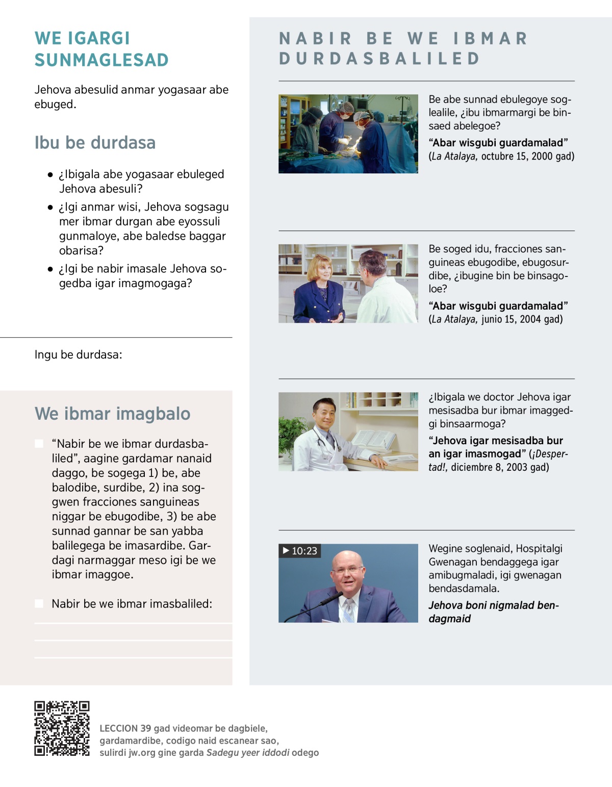 ¿Ibigala we doctor Jehova igar mesisadba bur ibmar imaggedgi binsaarmoga?