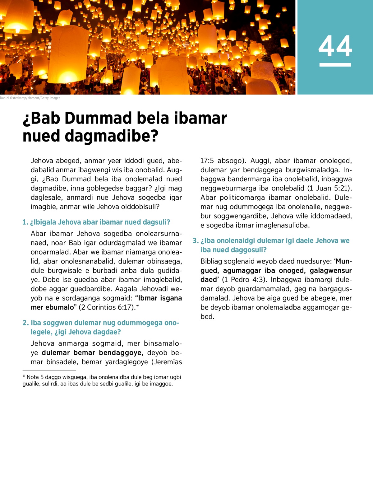 Jehova abeged, anmar yeer iddodi gued, abedabalid anmar ibagwengi wis iba onobalid. Auggi, ¿Bab Dummad bela iba onolemalad nued dagmadibe, inna goblegedse baggar? ¿Igi mag daglesale, anmardi nue Jehova sogedba igar imagbie, anmar wile Jehova oiddobisuli?