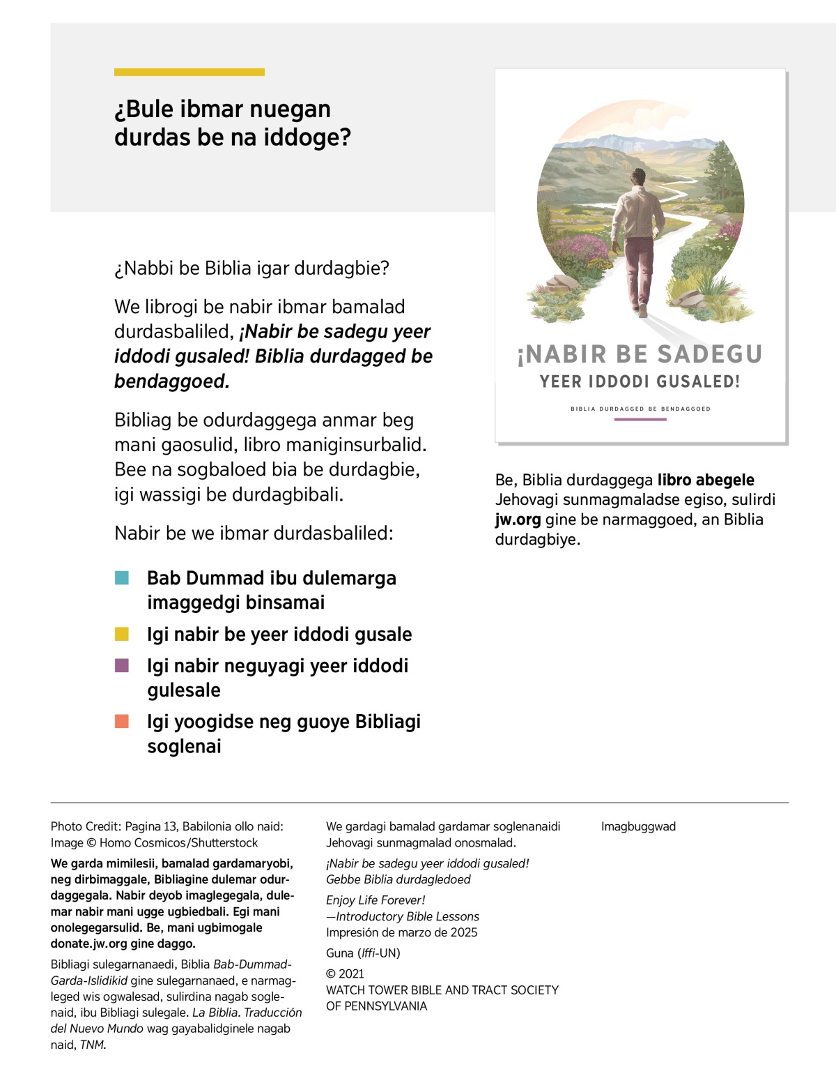 We librogi be nabir ibmar bamalad durdasbaliled, ¡Nabir be sadegu yeer iddodi gusaled! Biblia durdagged be bendaggoed.
