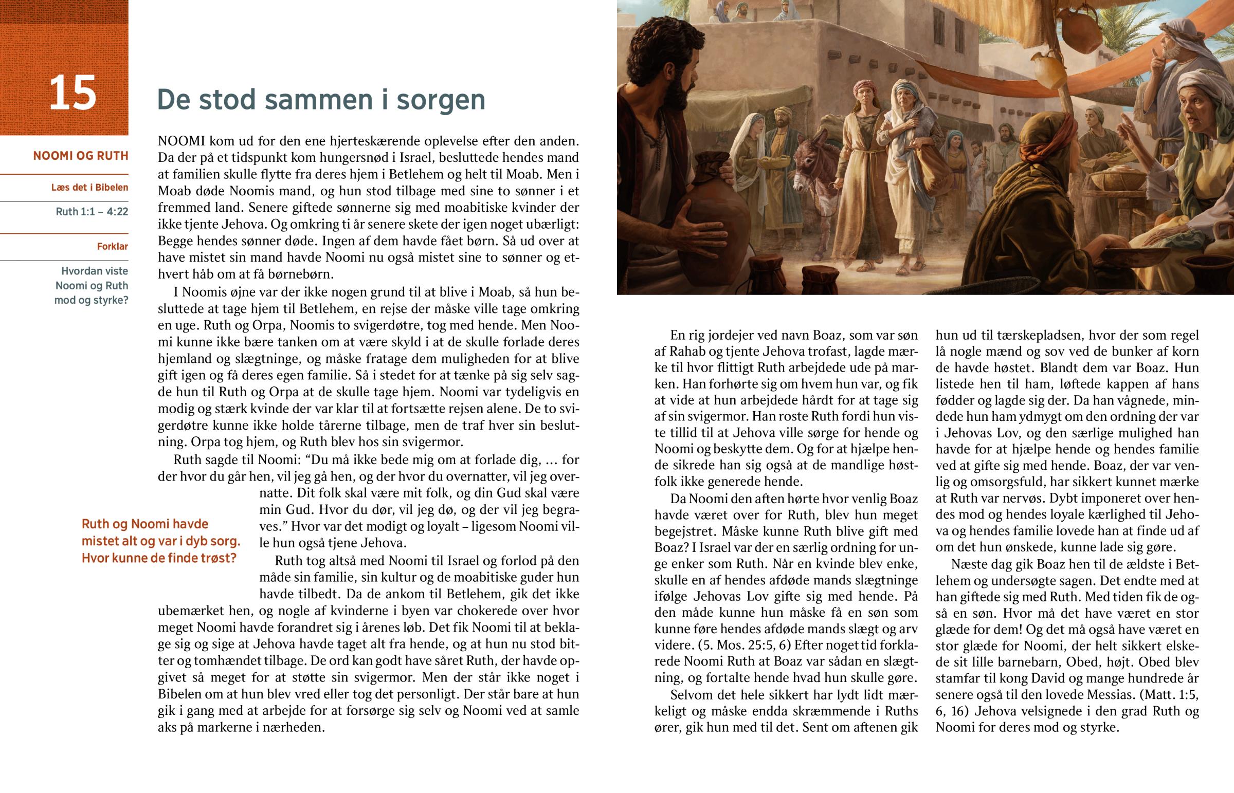 Ruth sagde til Noomi: “Du må ikke bede mig om at forlade dig, ... for der hvor du går hen, vil jeg gå hen, og der hvor du overnatter, vil jeg overnatte. Dit folk skal være mit folk, og din Gud skal være min Gud. Hvor du dør, vil jeg dø, og der vil jeg begraves.” Hvor var det modigt og loyalt – ligesom Noomi ville hun også tjene Jehova.