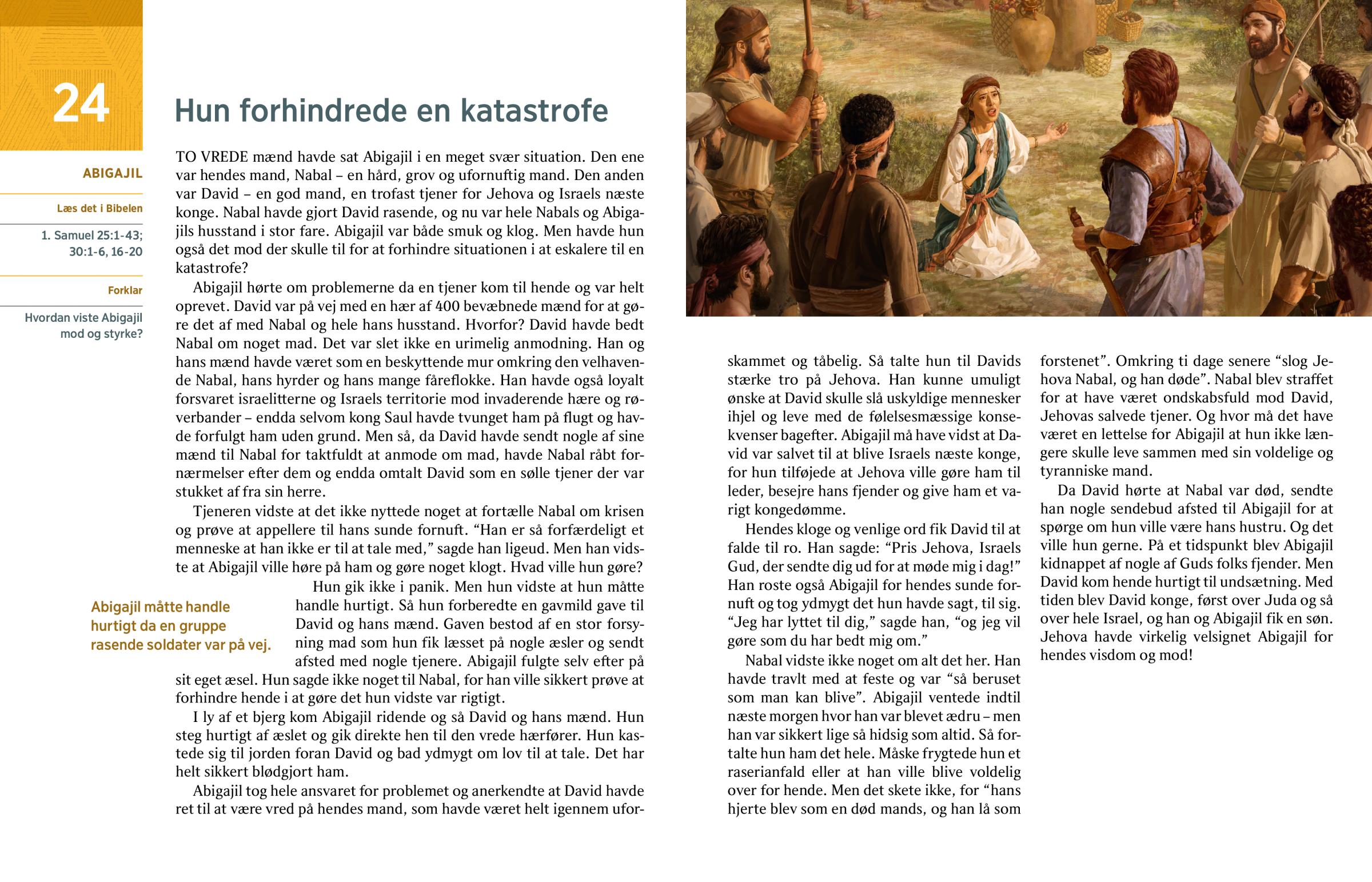 TO VREDE mænd havde sat Abigajil i en meget svær situation. Den ene var hendes mand, Nabal – en hård, grov og ufornuftig mand. Den anden var David – en god mand, en trofast tjener for Jehova og Israels næste konge. Nabal havde gjort David rasende, og nu var hele Nabals og Abigajils husstand i stor fare. Abigajil var både smuk og klog. Men havde hun også det mod der skulle til for at forhindre situationen i at eskalere til en katastrofe?