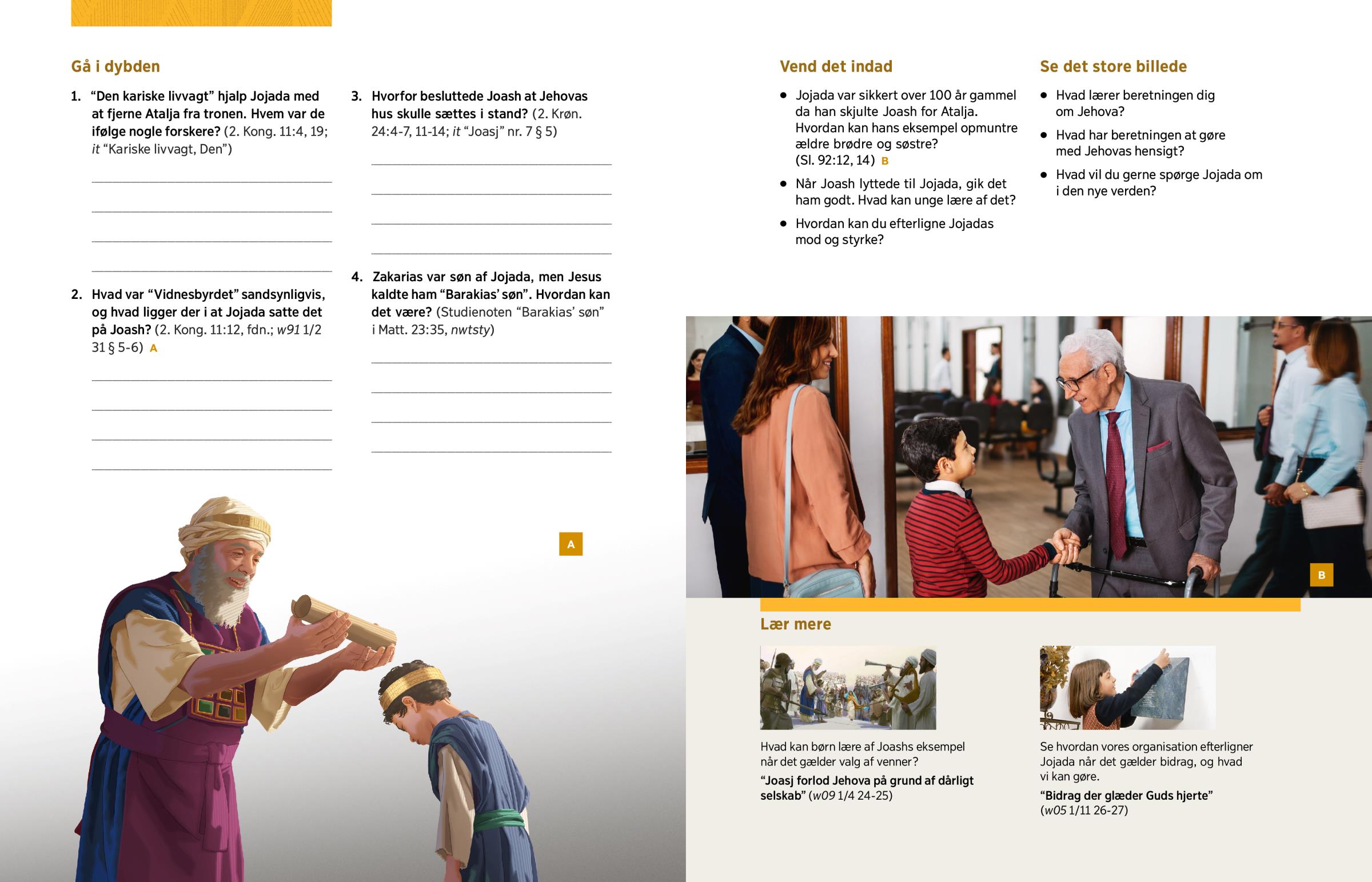 Jojada var sikkert over 100 år gammel da han skjulte Joash for Atalja. Hvordan kan hans eksempel opmuntre ældre brødre og søstre? (Sl. 92:12, 14) B