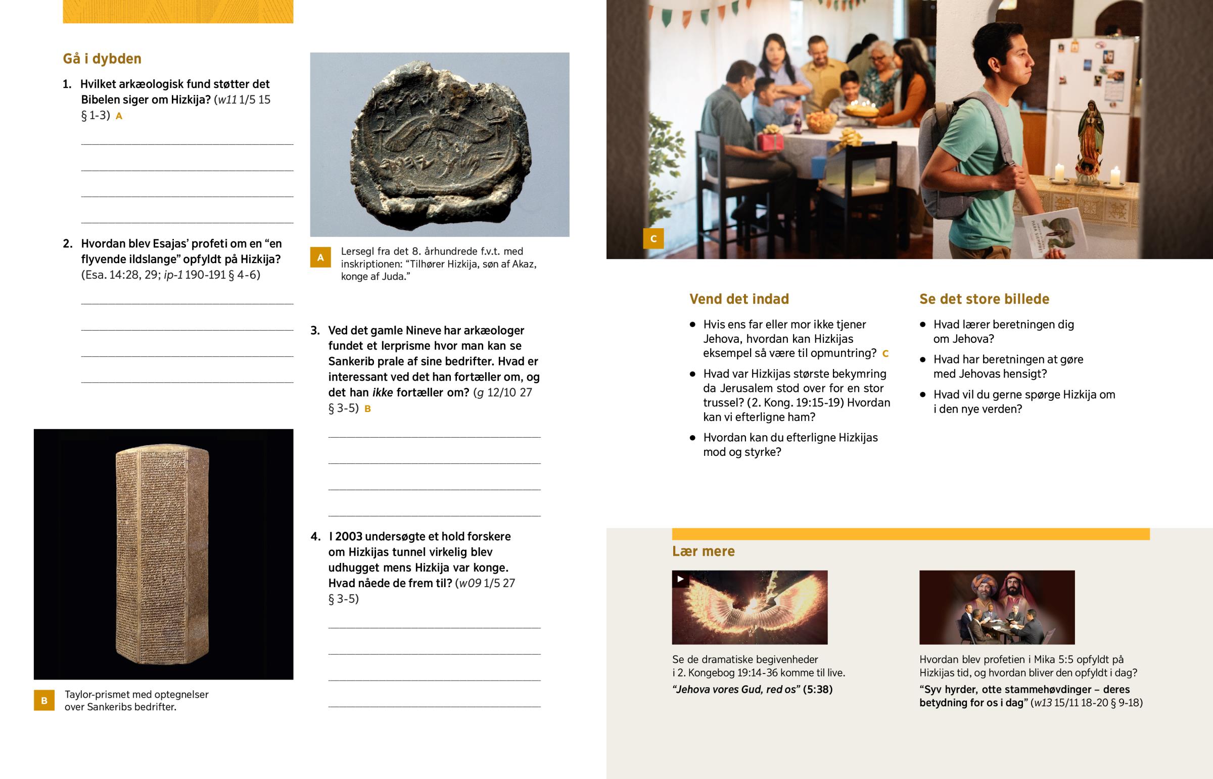 1. Hvilket arkæologisk fund støtter det Bibelen siger om Hizkija? (w11 1/5 15 § 1-3) A