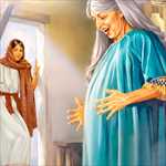 Maria ankommer nu til Zakarias’ hus. Hun går indenfor og hilser på sin slægtning Elisabeth. Da Elisabeth hører hilsenen, bliver hun fyldt med hellig ånd og siger til Maria: “Velsignet er du blandt kvinder, og velsignet er barnet du venter! Hvordan kan det være at jeg har fået det privilegium at min Herres mor kommer til mig? For se, da jeg hørte din hilsen, sparkede barnet af glæde.” – Lukas 1:42-44.