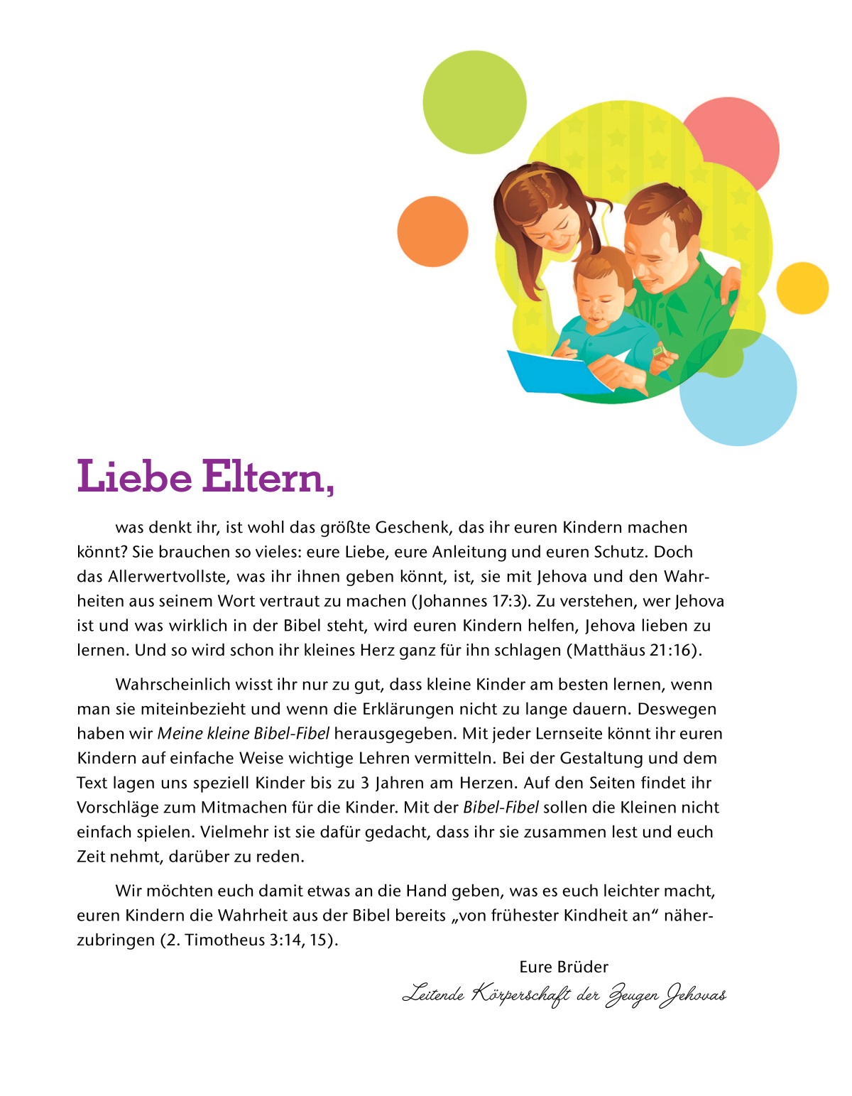 Wahrscheinlich wisst ihr nur zu gut, dass kleine Kinder am besten lernen, wenn man sie miteinbezieht und wenn die Erklärungen nicht zu lange dauern. Deswegen haben wir Meine kleine Bibel-Fibel herausgegeben. Mit jeder Lernseite könnt ihr euren Kindern auf einfache Weise wichtige Lehren vermitteln. Bei der Gestaltung und dem Text lagen uns speziell Kinder bis zu 3 Jahren am Herzen. Auf den Seiten findet ihr Vorschläge zum Mitmachen für die Kinder. Mit der Bibel-Fibel sollen die Kleinen nicht einfach spielen. Vielmehr ist sie dafür gedacht, dass ihr sie zusammen lest und euch Zeit nehmt, darüber zu reden.