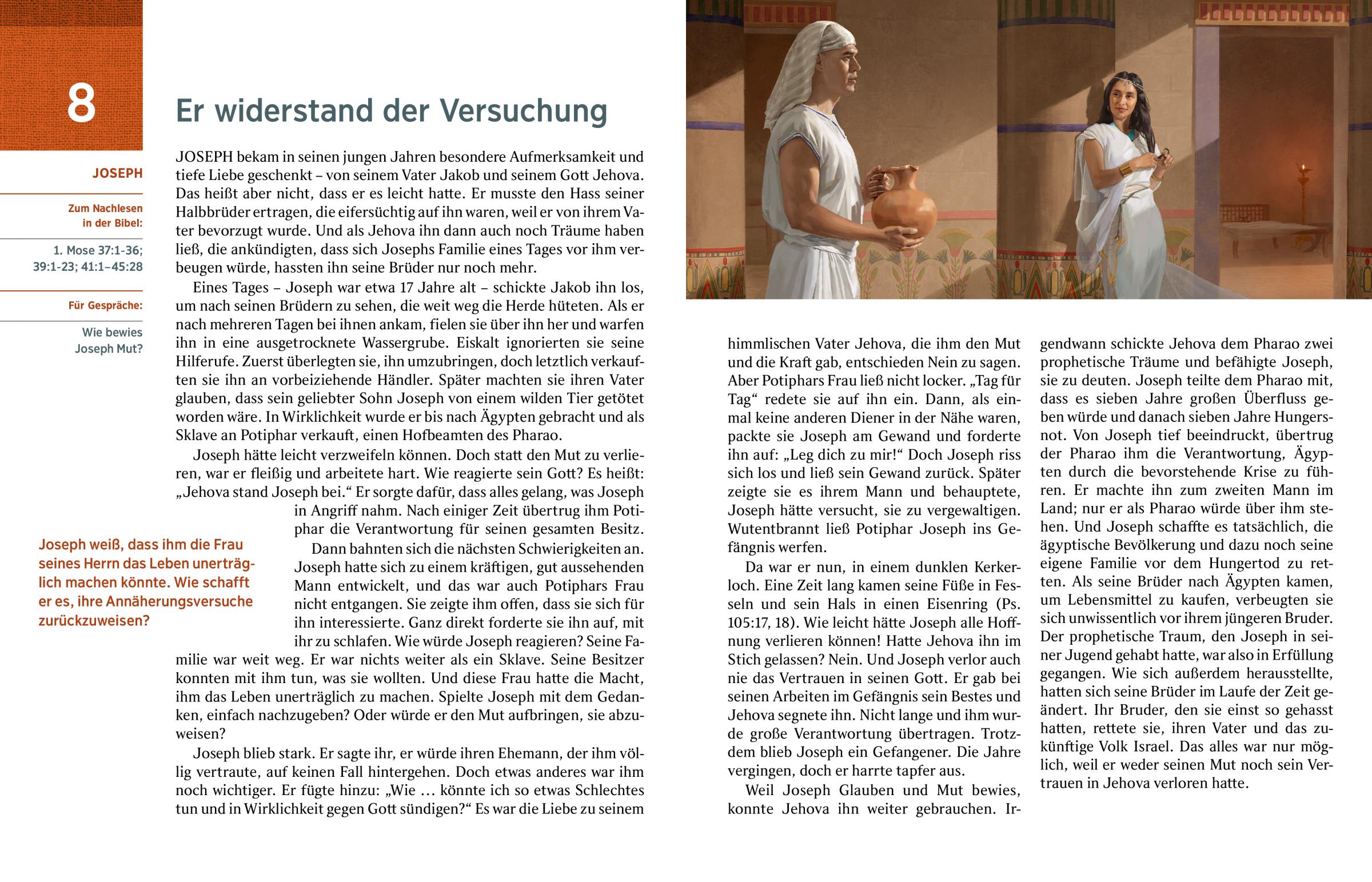 Dann bahnten sich die nächsten Schwierigkeiten an. Joseph hatte sich zu einem kräftigen, gut aussehenden Mann entwickelt, und das war auch Potiphars Frau nicht entgangen. Sie zeigte ihm offen, dass sie sich für ihn interessierte. Ganz direkt forderte sie ihn auf, mit ihr zu schlafen. Wie würde Joseph reagieren? Seine Familie war weit weg. Er war nichts weiter als ein Sklave. Seine Besitzer konnten mit ihm tun, was sie wollten. Und diese Frau hatte die Macht, ihm das Leben unerträglich zu machen. Spielte Joseph mit dem Gedanken, einfach nachzugeben? Oder würde er den Mut aufbringen, sie abzuweisen?