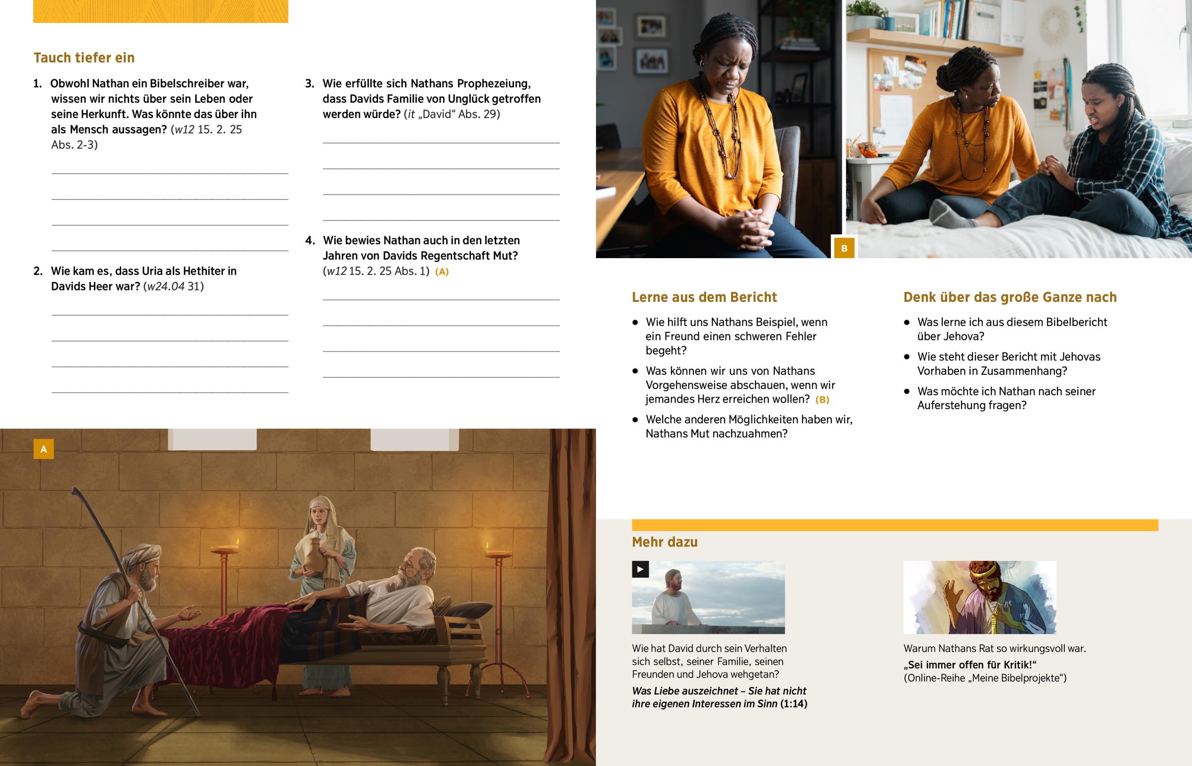 1. Obwohl Nathan ein Bibelschreiber war, wissen wir nichts über sein Leben oder seine Herkunft. Was könnte das über ihn als Mensch aussagen? (w12 15. 2. 25 Abs. 2-3)