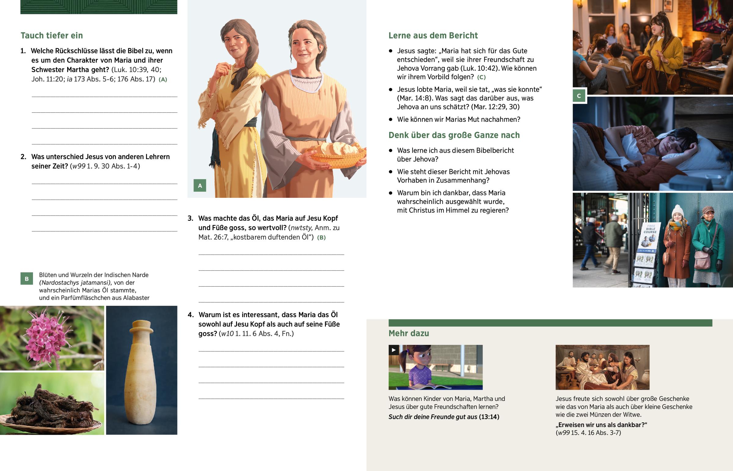 Jesus sagte: „Maria hat sich für das Gute entschieden“, weil sie ihrer Freundschaft zu Jehova Vorrang gab (Luk. 10:42). Wie können wir ihrem Vorbild folgen? (C)