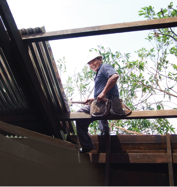 Ein Bruder vom Ranguner Katastrophenhilfskomitee repariert ein vom Zyklon Nargis beschädigtes Haus (Seite 163)